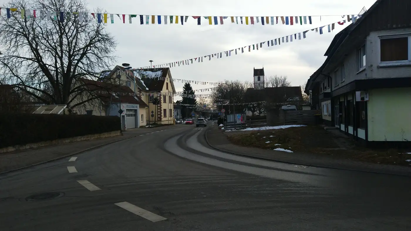Kurz vor Hochemmingen treten wir aus dem Wald heraus und erreichen offenes Gelände. Auf verkehrsarmen Straßen durchqueren wir den Ort, vorbei an Wohnhäusern und gepflegten Gärten, die einen bodenständigen, ländlichen Charakter vermitteln. Wir nehmen die ruhige Atmosphäre des Dorfes wahr, ohne lange zu verweilen, und verlassen Hochemmingen schließlich beim Friedhof, wo sich der Weg wieder in die Landschaft öffnet.Der Eckbühl