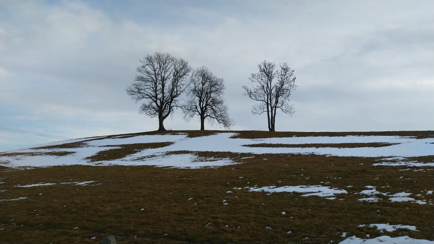 Vorbei am Eckbühl (799,2 Meter) steigen wir leicht an und gewinnen zunehmend an Überblick. Unser Weg führt über offene Höhen, von denen sich weite Blicke über Felder, Wälder und die umliegende Landschaft eröffnen. Der Eckbühl ist durch seine drei markanten Baumgruppen schon von weitem gut erkennbar und bildet zugleich den höchsten Punkt dieser Wanderung. Die Kombination aus Weite, Bewegung und Fernsicht macht diesen Abschnitt besonders reizvoll.Mühlhauser Wasserfall