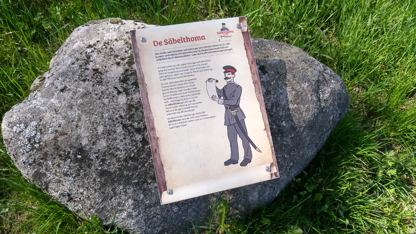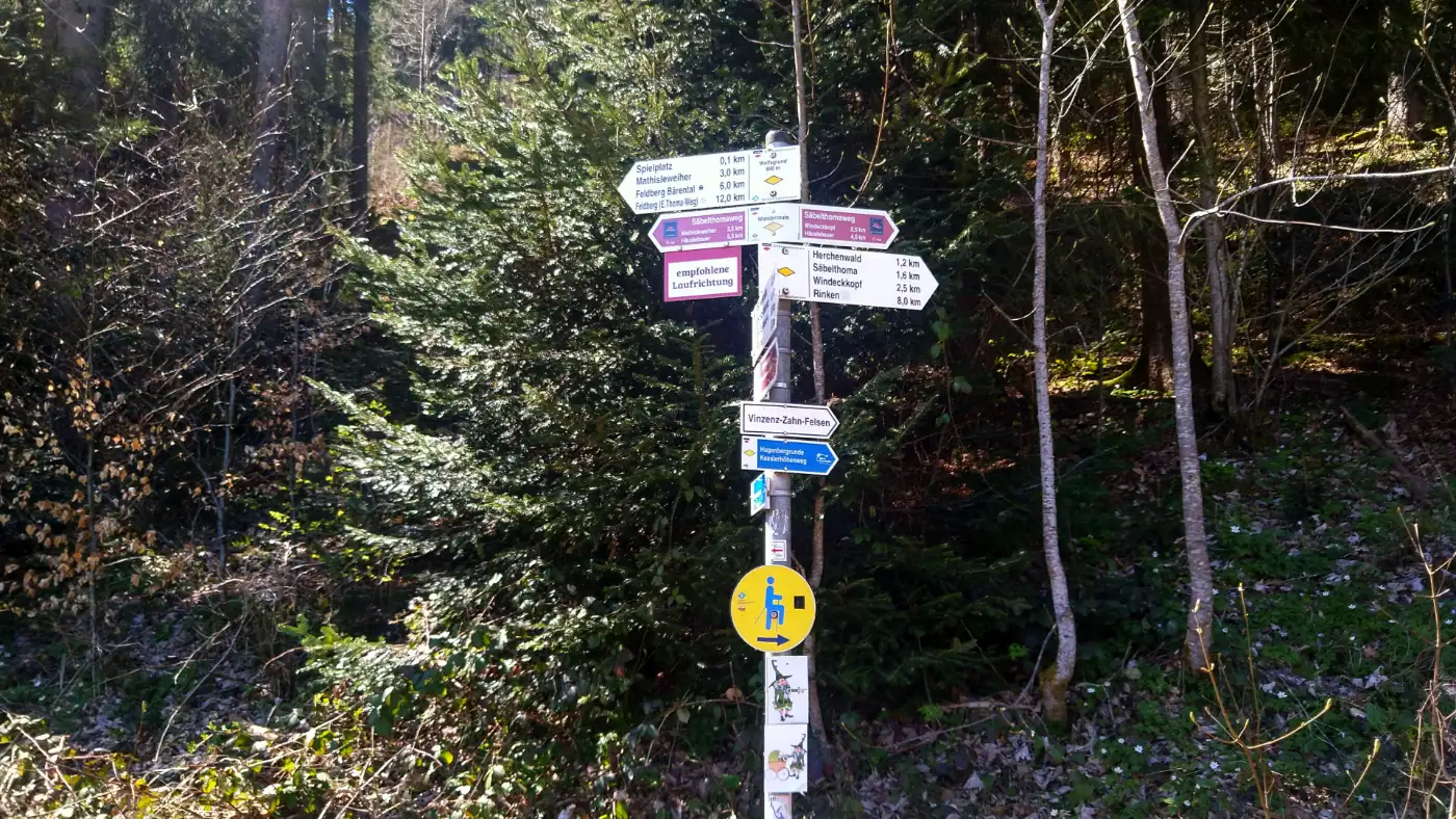 WĂ€hrend des Abstiegs zurĂŒck nach Hinterzarten passieren wir den SĂ€belthomahof, der dem Weg seinen Namen gegeben hat und eng mit der lokalen Geschichte des Hochschwarzwalds verbunden ist. Der "SĂ€belthoma", mit dem Namen Thomas, war im 19. Jahrhundert als Ortspolizist und NachrichtenĂŒberbringer in Hinterzarten bekannt und fiel durch seinen stets getragenen SĂ€bel so sehr auf, dass sich sein Beiname schnell in der Region etablierte. Wir folgen dem vertrauten Pfad zurĂŒck in Richtung Ausgangspunkt und lassen die EindrĂŒcke dieser abwechslungsreichen Runde zwischen Wald, Wasser und Höhenlagen nachwirken.Diese Tour wurde am 24.04.2026 von einer realen Person erwandert, fotografiert und beschrieben. Die GPS-Daten der Fotos wurden vor Ort erfasst und dienten zur exakten Rekonstruktion der Route.