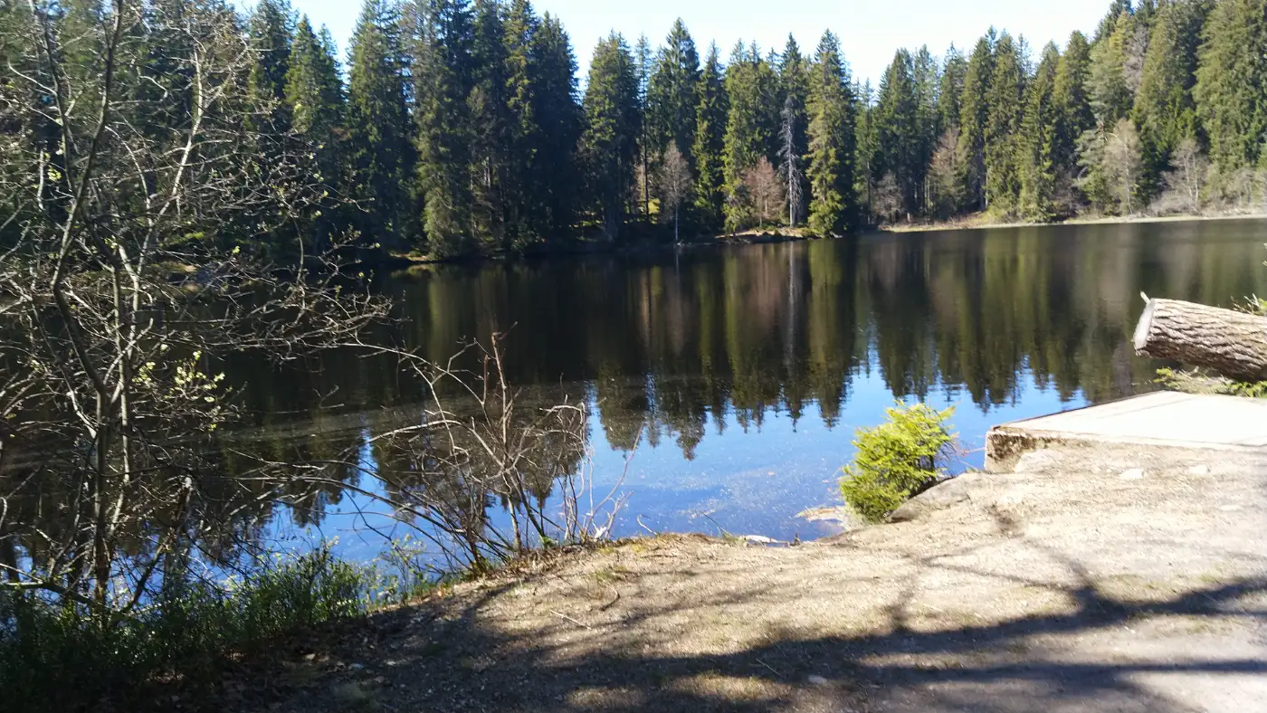Nach kurzer Zeit erreichen wir den Mathisleweiher. Der kleine, naturbelassene See liegt verborgen im Wald und wirkt wie ein stiller Spiegel zwischen den BĂ€umen. Wir gehen ein StĂŒck am Ufer entlang und nehmen die ruhige Stimmung bewusst wahr. Das Wasser liegt fast reglos da und verstĂ€rkt den Eindruck eines abgeschiedenen Naturortes. Der Mathisleweiher ist ein rund 1.000 Meter hoch gelegener Moorsee im Hochschwarzwald, der in einer eiszeitlich geformten Mulde entstanden ist und vom Zartenbach durchflossen wird. Er gehört zum Naturschutzgebiet Eschengrundmoos und ist nur zu FuĂ erreichbar, was seine ruhige, ursprĂŒngliche Lage zusĂ€tzlich unterstreicht.Aufstieg zum Windkopf