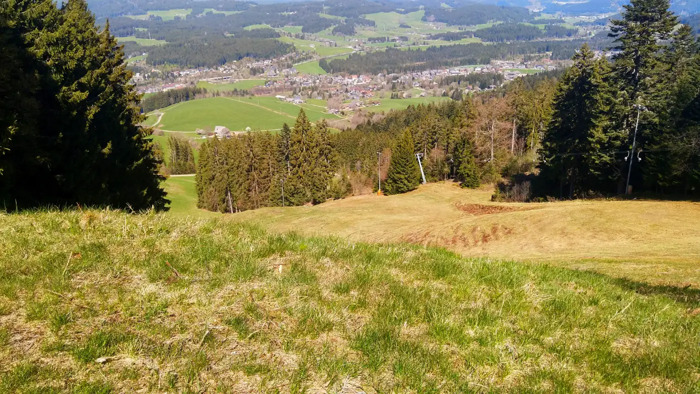SchlieĂlich erreichen wir den Windkopf. Oben öffnet sich ein weiter Blick ĂŒber den Hochschwarzwald, der je nach Wetterlage bis zu den umliegenden HöhenzĂŒgen reicht. Der Gipfel gehört zu den ruhigeren Aussichtspunkten der Region bei Hinterzarten und ist ein beliebter, aber nie ĂŒberlaufener Aussichtspunkt. Die offene Kuppe bietet dabei freie Sicht auf die typische Schwarzwaldlandschaft mit ihren bewaldeten RĂŒcken und weiten TĂ€lern.Der SĂ€belthoma