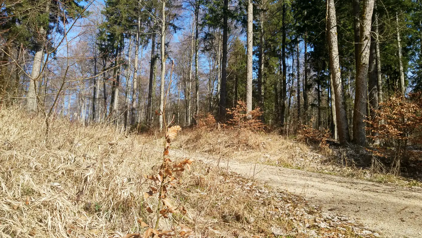 Nach einem weiteren Anstieg erreichen wir den Höhenrücken des Witthoh. Am Aussichtspunkt öffnet sich noch einmal eine beeindruckende Fernsicht über das Hegau-Bergland und die umliegenden Höhenzüge. Bei klarer Luft reicht der Blick weit über die Region hinaus. Wir lehnen uns kurz an das Geländer, lassen den Wind über die Höhe streichen und genießen die Weite. Dieser Abschnitt vermittelt besonders deutlich das Gefühl, über der Landschaft zu stehen.Brunnenkapelle und Rabenhof