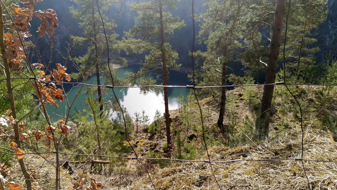 Wenig später erreichen wir das Michelsloch, eine eindrucksvolle Doline, die tief in den Boden eingesunken ist. Dieses Naturphänomen entstand durch Auswaschungen im Kalkgestein, bei denen unterirdische Hohlräume einbrechen und eine trichterförmige Senke hinterlassen. Wir treten vorsichtig näher an den Rand und blicken in die Tiefe. Das Michelsloch wirkt wie ein Fenster in die verborgene Welt unter unseren Füßen und erinnert daran, wie stark Wasser die Landschaft über lange Zeiträume formen kann.Kratersee Höwenegg