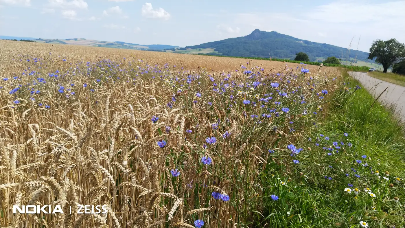 Wir verlassen den See über einen schmalen, leicht welligen Pfad und überqueren die Landstraße, bevor wir weiter zum Fuß des Hohenhewen wandern. Der steil aufragende Berg begleitet uns nun wie ein ständiger Weggefährte und dominiert die Szenerie mit seiner markanten Form. Auf gut begehbaren Wegen schreiten wir voran, vorbei an Wiesenflächen und kurzen Waldpassagen. Ein letzter Blick zurück zeigt die markante Silhouette des Hohenstoffeln, während sich vor uns bereits die Landschaft in Richtung unseres nächsten Etappenziels öffnet.Welschingen