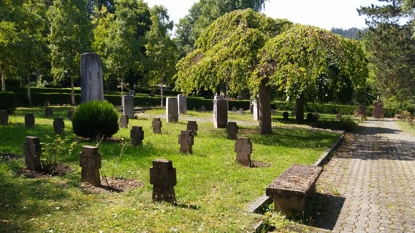 Von der Burg steigen wir auf der Westseite hinab, folgen der Altensteiger Straße und passieren dabei das Schwimmbad sowie die Realschule, bis wir die Remigiuskirche erreichen, die malerisch vom Nagolder Friedhof umgeben ist. Sie gilt als älteste Kirche der Region und geht auf eine alemannische Gründung im 8. Jahrhundert zurück. Der heutige Bau vereint romanische und gotische Elemente und beeindruckt im Inneren mit Fresken aus dem frühen 14. Jahrhundert, die Szenen aus dem Leben Jesu darstellen. Besonders eindrucksvoll ist der Triumphbogen im Chor, der auf römischen Säulen ruht - ein stiller Hinweis auf die lange Geschichte des Ortes. Wer die Kirche betritt, spürt sofort ihre geheimnisvolle, fast zeitlose Atmosphäre, die sich wunderbar mit der geschichtsträchtigen Wanderung verbindet.3 Sühnekreuze