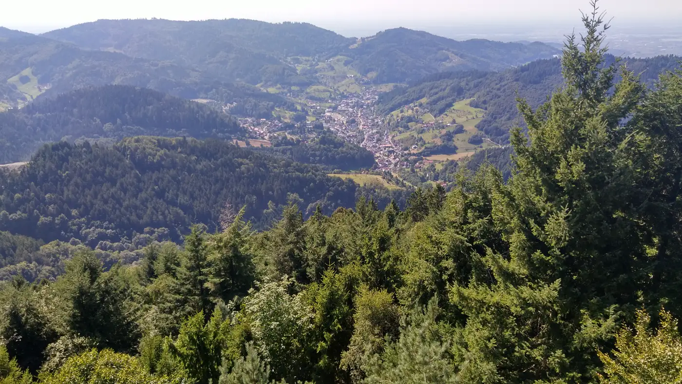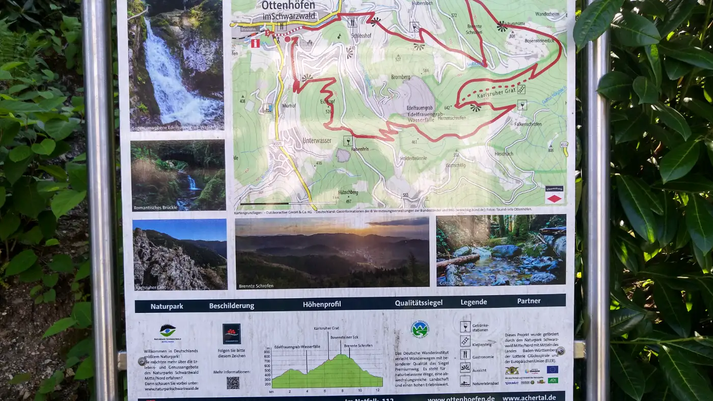 Vom Brennte Schrofen zieht sich der Rückweg über etwa vier Kilometer hinunter nach Ottenhöfen. Der Abstieg wechselt zwischen schattigen Waldpassagen, sanfteren Wegstücken und einzelnen offenen Stellen, von denen sich der Blick noch einmal ins Tal öffnet. Wenn das Sonnenlicht tiefer fällt, lassen sich die Felder, Wege und Gebäude des Tals besonders deutlich erkennen - von hier aus beginnt der rund vier Kilometer lange Abstieg zurück nach Ottenhöfen. Zunächst windet sich der Pfad schmal durch den Wald, ehe er in breitere Wege übergeht, die mit kleinen Lichtungen und gelegentlichen Ausblicken ins Tal für Abwechslung sorgen. Mit jedem Höhenmeter wird das Panorama kleiner und die Geräusche des Ortes deutlicher - ein stimmiger Ausklang dieser Runde, der die zuvor gewonnenen Höhen eindrucksvoll spürbar macht.Diese Tour wurde am 19.08.2025 von einer realen Person erwandert, fotografiert und beschrieben. Die GPS-Daten der Fotos wurden vor Ort erfasst und dienten zur exakten Rekonstruktion der Route.