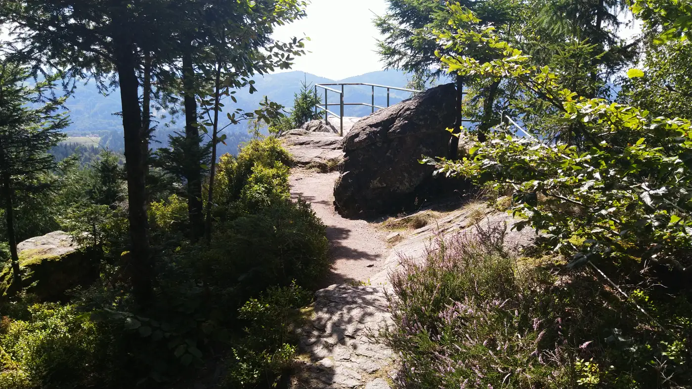 Die Route ist als Premiumweg ausgezeichnet und trägt diesen Titel zu Recht. Auf schmalen Pfaden führt der Weg hinein in eine Landschaft, die abwechslungsreicher kaum sein könnte: felsige Passagen wechseln sich mit wurzeligen Waldwegen ab, und immer wieder öffnen sich überraschende Blicke in das Achertal. Der Karlsruher Grat gilt als einer der wenigen alpinen Steige im nördlichen Schwarzwald und sorgt mit seiner Vielfalt für ein echtes Abenteuergefühl.Edelfrauengrab - Wasserfälle