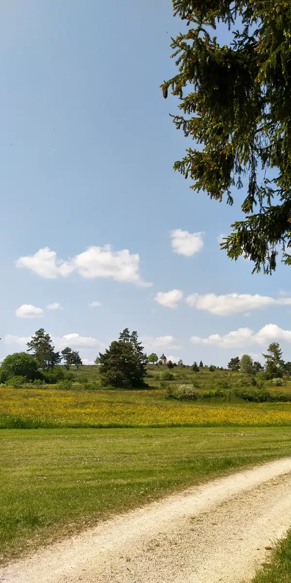 Sportliche Wanderung über aussichtsreiche Höhen, Wacholderheiden und stille Täler mit Kapellen, Quelle und gemütlicher Einkehr. Wir starten am Busbahnhof Spaichingen, überqueren den Marktplatz und folgen der Hauptstraße, bis wir links den Anstieg in Richtung Dreifaltigkeitsberg einschlagen. An der Dreifaltigkeitskirche vorbei orientieren wir uns am Wegweiser nach Böttingen. Der Pfad führt uns zunächst durch schattigen Wald, bevor sich das Gelände wieder öffnet. Bald erreichen wir die kleine Kapelle am Spaichinger Weg. Neben einer alten Eiche steht sie unscheinbar am Rand des Weges und fügt sich harmonisch in die Landschaft ein. Wir legen eine kurze Pause ein und genießen die erste weite Aussicht über die sanften Höhenzüge, die den weiteren Verlauf unserer Tour prägen.Josefskapelle auf dem Alten Berg bei Böttingen