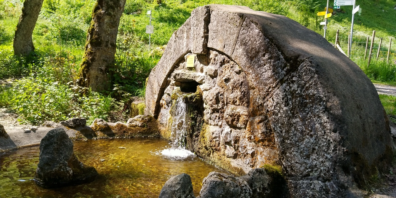 Der Alte Berg mit seiner Kapelle verbindet stille Einkehr mit weitem Panorama. Bei klarer Sicht reicht der Blick von der Albhochfläche bis hin zu den fernen Alpen. Als markanter Punkt auf dem Höhenrücken zählt er zu den aussichtsreichsten Stationen unserer Wanderung. Unser Weg führt abwechslungsreich durch offene Wiesen, typische Wacholderflächen und kurze Waldstücke. Die Landschaft wirkt hier oben weit und klar, beinahe grenzenlos, bevor wir allmählich den Abstieg ins Tal in Angriff nehmen.Brücklebrunnen Grauentalquelle