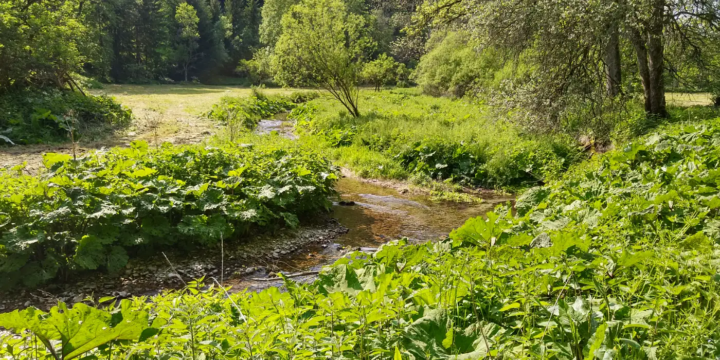 Weiter geht es durch das Schäfertal, stets der Lippach entlang, und der Weg führt uns langsam hinunter zur Lippachmühle. Das historische Mühlenanwesen liegt eingebettet in die Tallandschaft und vermittelt eine angenehme Ruhe. Die Lippachmühle selbst ist ein alteingesessener Landgasthof, dessen Gebäude bis ins 14. Jahrhundert zurückreicht und früher als Versorgungsstation für die umliegenden Ortschaften diente, bevor es sich zu einem beliebten Rast- und Einkehrpunkt für Wanderer entwickelte. Hier kreuzen sich Wege, Wasser und Geschichte. Wir nutzen die Gelegenheit für eine kurze Rast, bevor wir entlang des Bachs weiterwandern.Durchs Schäfertal