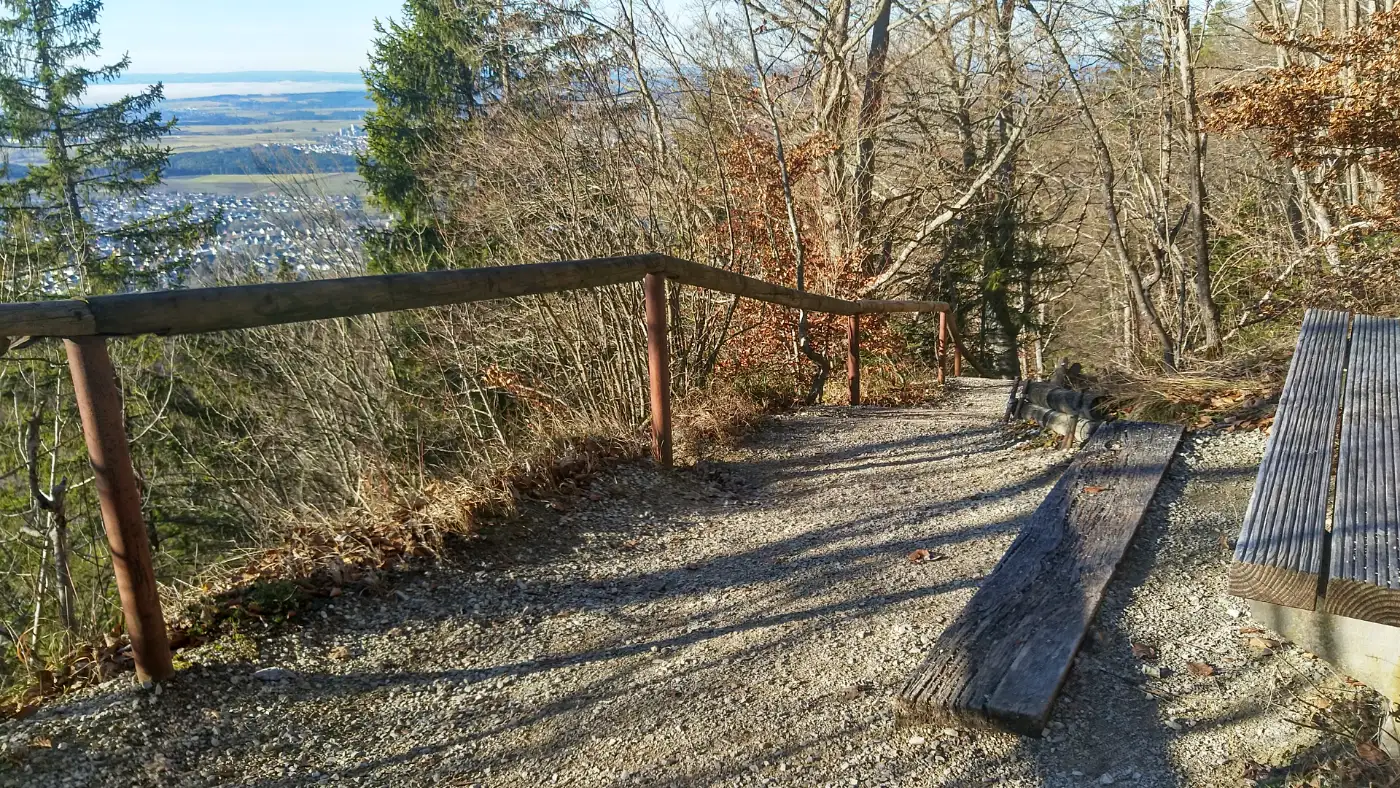 Rund um den Gipfel genießen wir ein beeindruckendes Panorama. Unser Blick reicht über die Stadt Spaichingen, die Berge des Schwarzwalds und bei klarer Sicht bis zu den Alpen. Wir verweilen an den Aussichtspunkten, entdecken bekannte Orte aus der Vogelperspektive und lassen die Weite der Landschaft auf uns wirken. Direkt am Gipfel laden zudem der Klosterladen sowie das Gasthaus Dreifaltigkeitsberg mit seinem Biergarten dazu ein, die Aussicht bei einer Pause in besonders schöner Lage zu genießen. Dieser Abschnitt zählt zu den eindrucksvollsten Momenten der Tour.Böttingen
