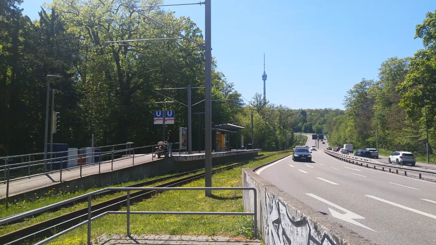 📅🚄Zur BahnauskunftVom Stuttgart Hauptbahnhof gehen wir zu Fuß zum Schlossplatz Stuttgart. An der U-Bahnstation Schlossplatz steigen wir in die Linie U15 Richtung Heumaden ein und fahren bis zur U-Bahnstation Ruhbank (Fernsehturm).