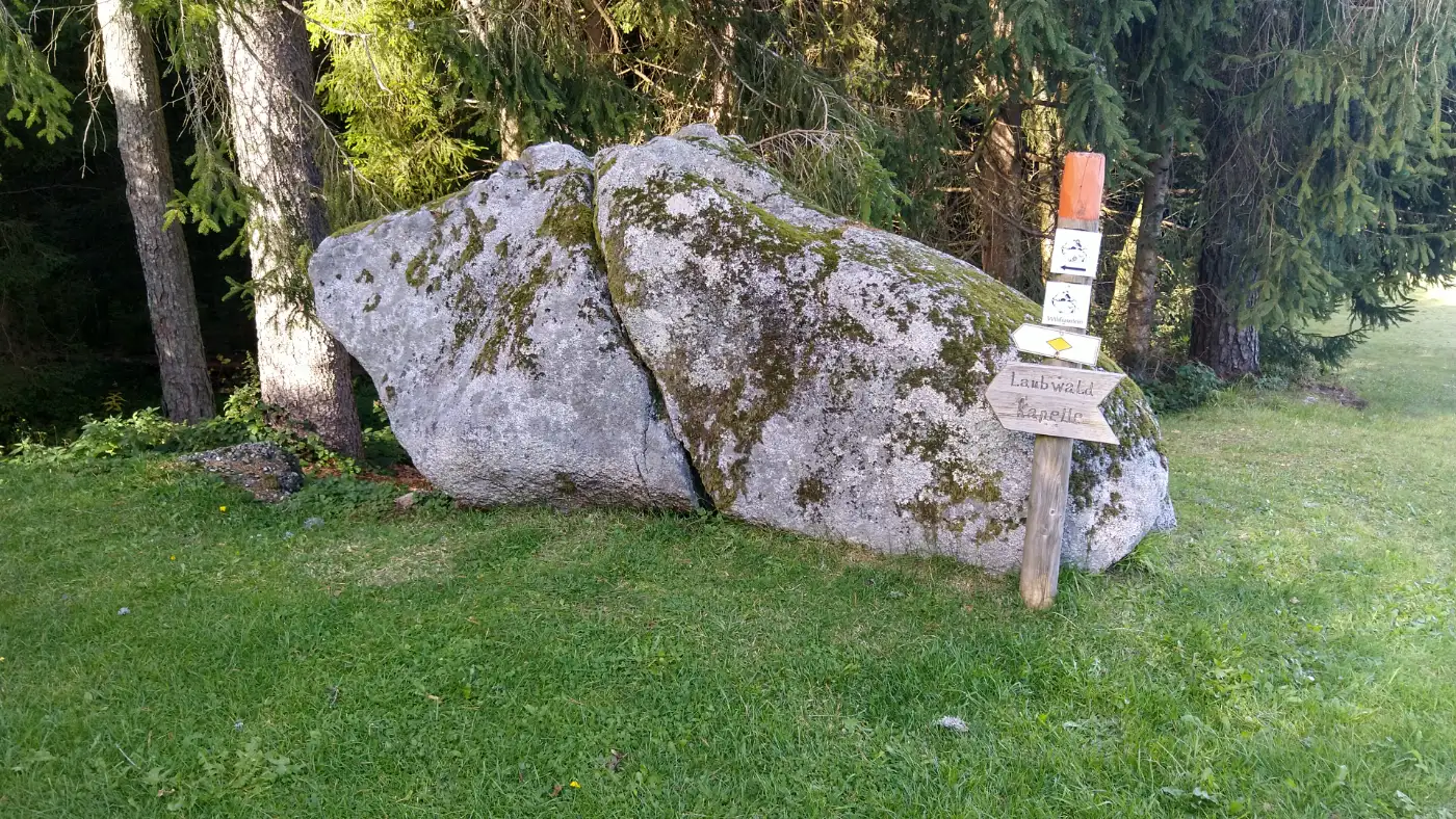 Kurz bevor wir Schonach erreichen, ragt am Horizont das Windrad auf - ein Symbol für den Wandel von Tradition und Moderne. Es dreht sich ruhig über den Schwarzwaldhöhen und erinnert daran, dass auch in dieser naturverbundenen Region die Zukunft längst Einzug gehalten hat. Von hier genießen wir einen eindrucksvollen Blick über die umliegenden Täler und Wälder, die sich im Sonnenlicht ausbreiten.Schalenstein auf dem Schalensteinweg