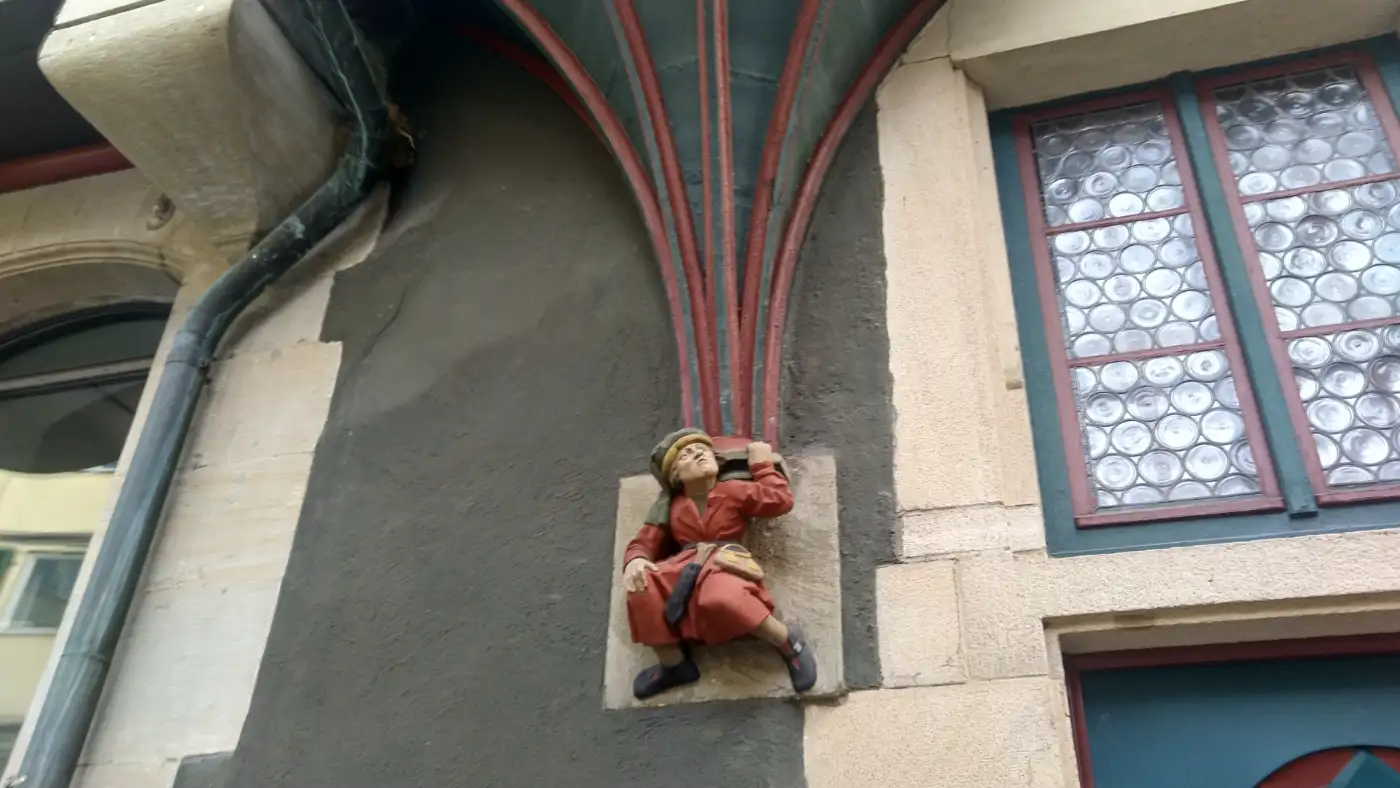 Im Umfeld des Schlosses stoßen wir auf die Bronzeskulptur eines steinzeitlichen Wildpferds - eine künstlerische Hommage an eines der ältesten Zeugnisse menschlicher Kreativität. Das Original einer solchen Figur, das sogenannte "Vogelherdpferdchen", wurde 1931 in der Vogelherdhöhle im Lonetal gefunden und gehört zu den frühesten bekannten Kunstwerken der Menschheit. Diese Miniatur aus Mammutelfenbein ist rund 40 000 Jahre alt und zählt zu den herausragenden Exponaten der Sammlung "Alte Kulturen" im Museum der Universität Tübingen auf Schloss Hohentübingen.Historische Altstadt von Tübingen