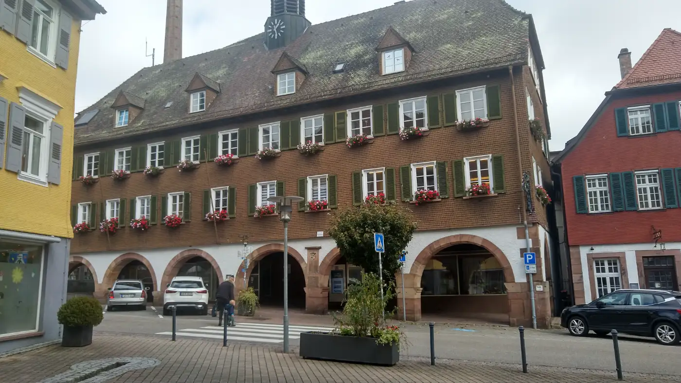 Genussvolle Schwarzwaldtour mit Einblicken in die Braukunst der Alpirsbacher Klosterbräu, alten Grenzsteinen und Panoramablick vom Staufenkopf. Unsere Wanderung beginnt im Herzen von Alpirsbach, wo das historische Rathaus mit seiner Fachwerkfassade den Auftakt bildet. Zwischen schmalen Gassen, kleinen Läden und gemütlichen Cafés spüren wir sofort den besonderen Charme der Klosterstadt. Der Blick auf das alte Gemäuer erinnert uns an vergangene Jahrhunderte - und daran, dass hier Geschichte und Schwarzwaldtradition auf Schritt und Tritt lebendig bleiben.Brauerei "Alpirsbacher Klosterbräu"
