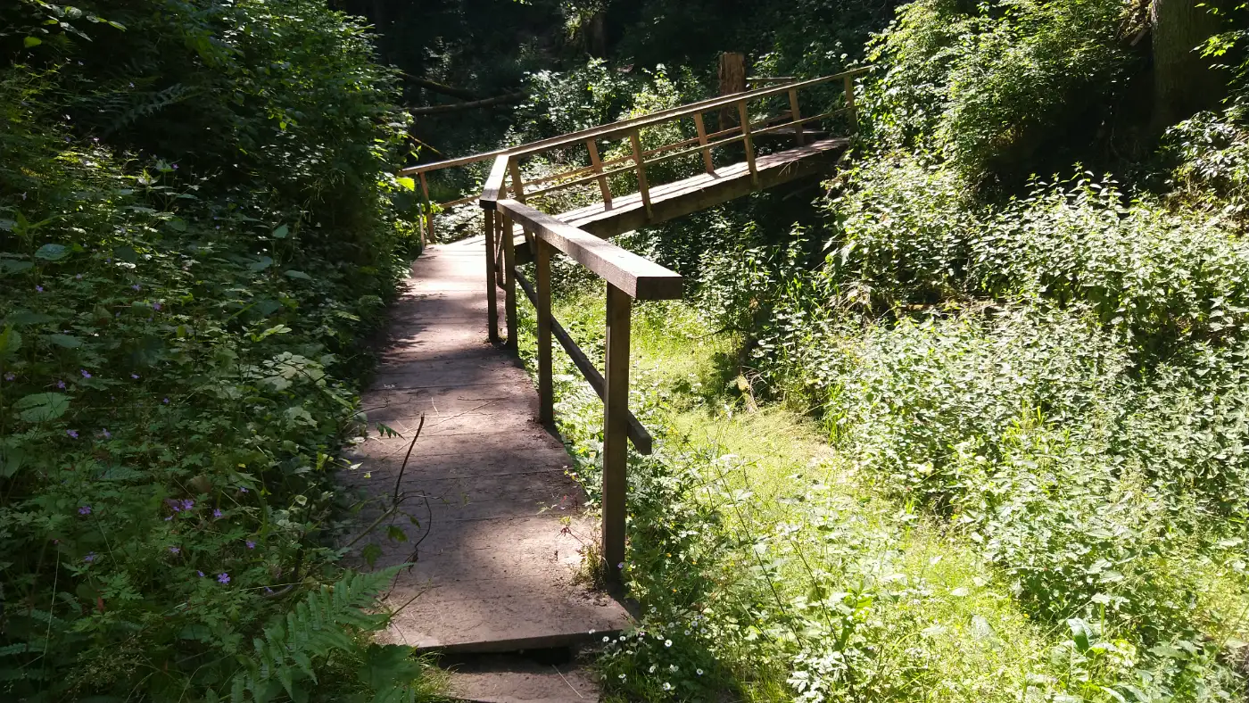 Rund 300 Meter hinter der Burgmühle zweigt der Weg nach links ab und führt uns hinein in die Engeschlucht - eine versteckte Seitenschlucht der Wutach, die als echter Geheimtipp im Hochschwarzwald gilt. Auf einer Länge von etwa 1,5 Kilometern verläuft sie zwischen der Gauchachschlucht und dem Ort Bachheim und beeindruckt durch ihre urwüchsige, fast mystisch wirkende Landschaft. Der Pfad durch die Engeschlucht ist schmal, abwechslungsreich und anspruchsvoll: Holzstege, verwurzelte Passagen und kleine Brücken fordern Aufmerksamkeit und gutes Schuhwerk - besonders bei feuchtem Wetter. Belohnt wird man mit einer wilden Schluchtenlandschaft, die von moosbewachsenen Felsen, steilen Hängen und dichtem Wald geprägt ist. Der Tränkebach begleitet die Wandernden mit seinem stetigen Rauschen, während sich unterwegs immer wieder reizvolle Blicke auf kleine Wasserfälle und natürliche Gumpen eröffnen. Die Engeschlucht vereint Naturerlebnis, Abenteuer und Stille - ein faszinierender Abschnitt, der jedes Wanderherz höherschlagen lässt. Erlebe die wilde Schönheit der Dreischluchtenwanderung - jetzt Wanderstiefel schnüren und die faszinierenden Schluchten der Wutach- und Gauchachschlucht entdecken!Diese Tour wurde am 21.06.2025 von einer realen Person erwandert, fotografiert und beschrieben. Die GPS-Daten der Fotos wurden vor Ort erfasst und dienten zur exakten Rekonstruktion der Route.