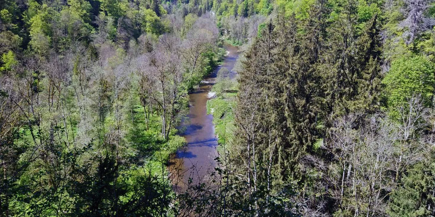 Die Wutach, ein teils wild und ungestüm fließender Fluss, begleitet uns auf diesem Stück, wobei sie sich ihren Weg kraftvoll durch die Landschaft bahnt.