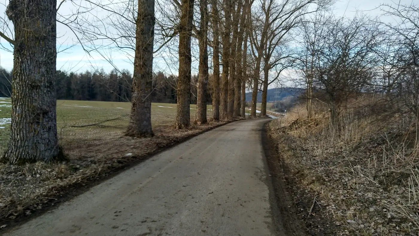 Unser Weg führt uns auf einem schattigen Waldweg hinauf nach Hochemmingen. Der Untergrund wechselt zwischen festen Forstwegen und weicheren Waldpfaden, während sich das Gelände leicht wellig gestaltet. Bäume schließen sich zu einem dichten Dach über uns, und das Licht fällt nur gefiltert auf den Boden. Dieser Abschnitt wirkt ruhig und abgeschieden und lässt die Geräusche der Umgebung verstummen.Hochemmingen