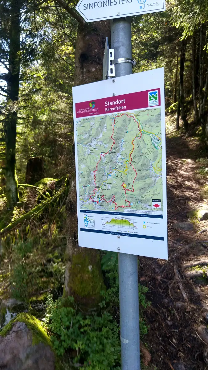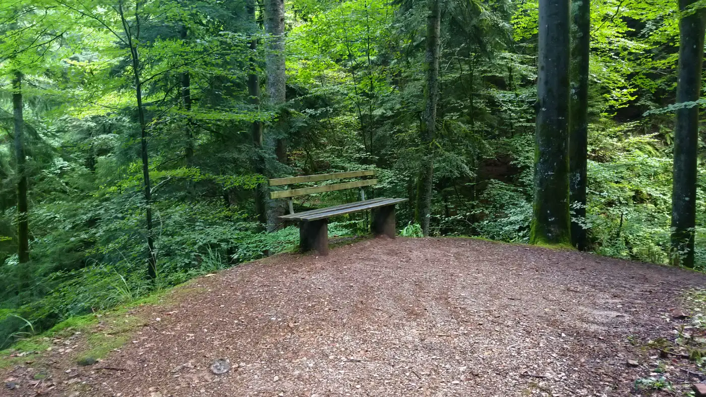 Nach dem Wasserfall geht es bergauf über Treppen und Pfade zur markanten Buntsandstein-Formation, die dem Weg seinen Namen gibt. Die "Teufelskanzel" thront über den Bäumen - ein naturgewachsenes Felsplateau, das uns eine mystische Aussicht bietet und das Gefühl verstärkt, auf einem natürlichen Thron zu stehen. An diesem Punkt erreichen wir eine Höhe von 909 m über dem Meer, was die Weite des Blicks ins Renchtal und auf die umliegenden Schwarzwaldhöhen noch eindrucksvoller macht.Marienruhe
