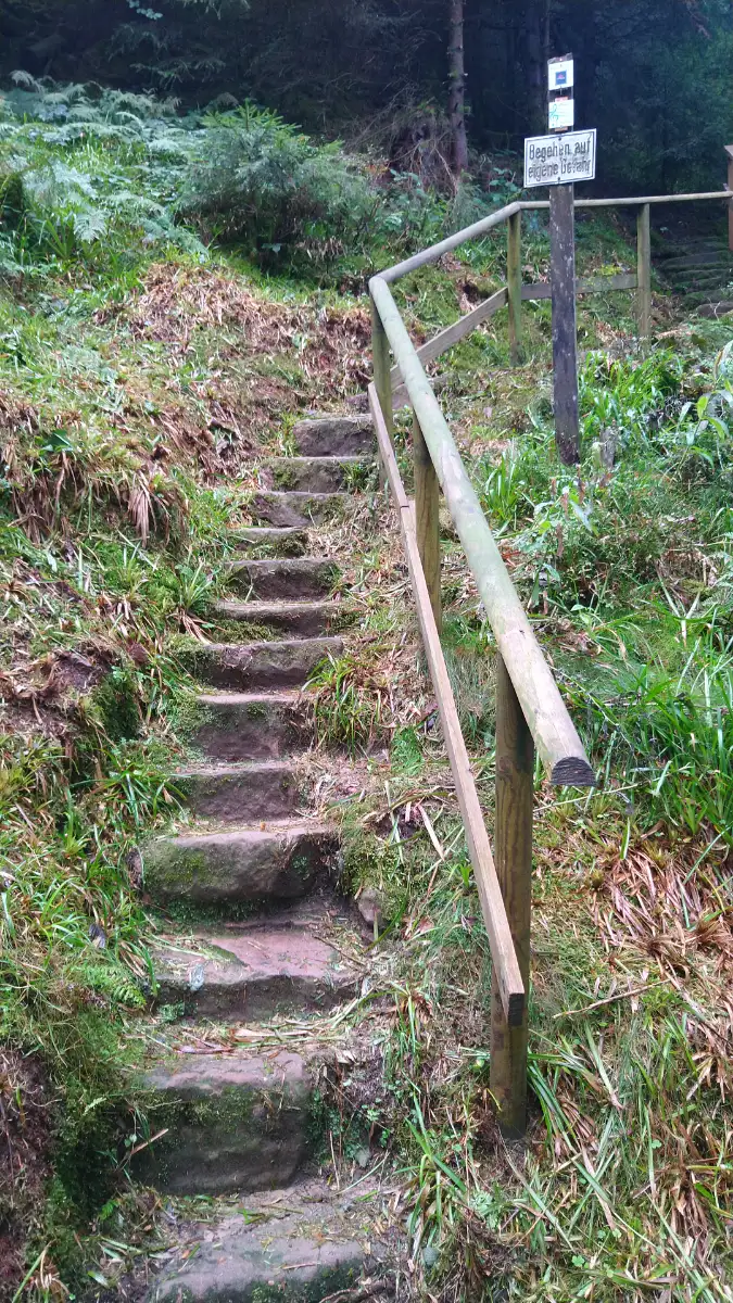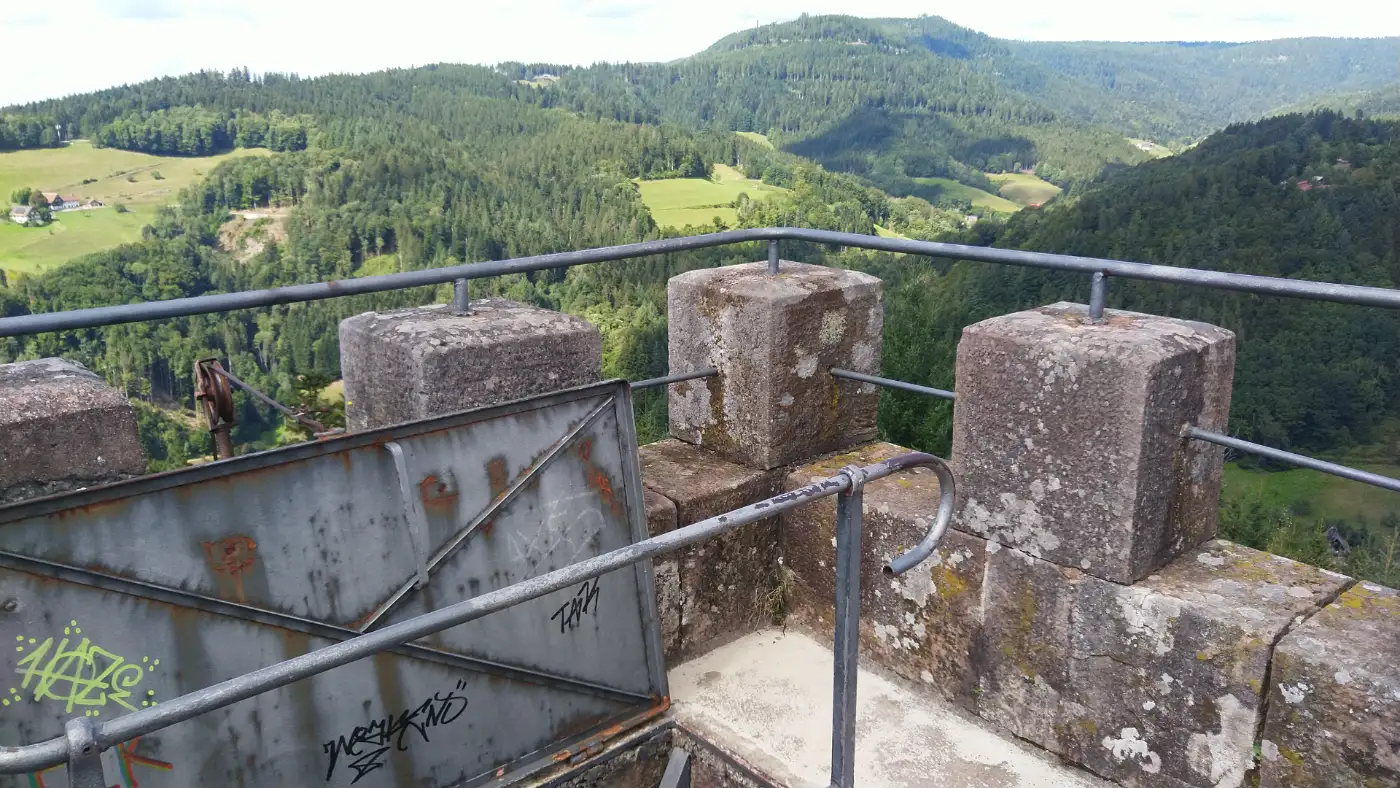 Der Rückweg führt im Zickzack über den eindrucksvollen Rappenschliff - eine steile Buntsandsteinrinne - und passiert das frühere Silberabbaugebiet "Silbereck". Ein kurzer Abstecher zum Habererturm lohnt sich besonders: Der 16 m hohe Sandsteinturm, 1899 zu Ehren des Badearztes Dr. Albert Haberer errichtet, eröffnet uns ein letztes Mal den weiten Blick über das Renchtal und die Schwarzwaldhöhen. Danach wandern wir über sanfte Waldwege zurück nach Bad Griesbach. So schließt sich eine abwechslungsreiche Runde, die Naturgenuss, kulturhistorische Spuren und eindrucksvolle Panoramen harmonisch miteinander verbindet.Diese Tour wurde am 29.08.2025 von einer realen Person erwandert, fotografiert und beschrieben. Die GPS-Daten der Fotos wurden vor Ort erfasst und dienten zur exakten Rekonstruktion der Route.