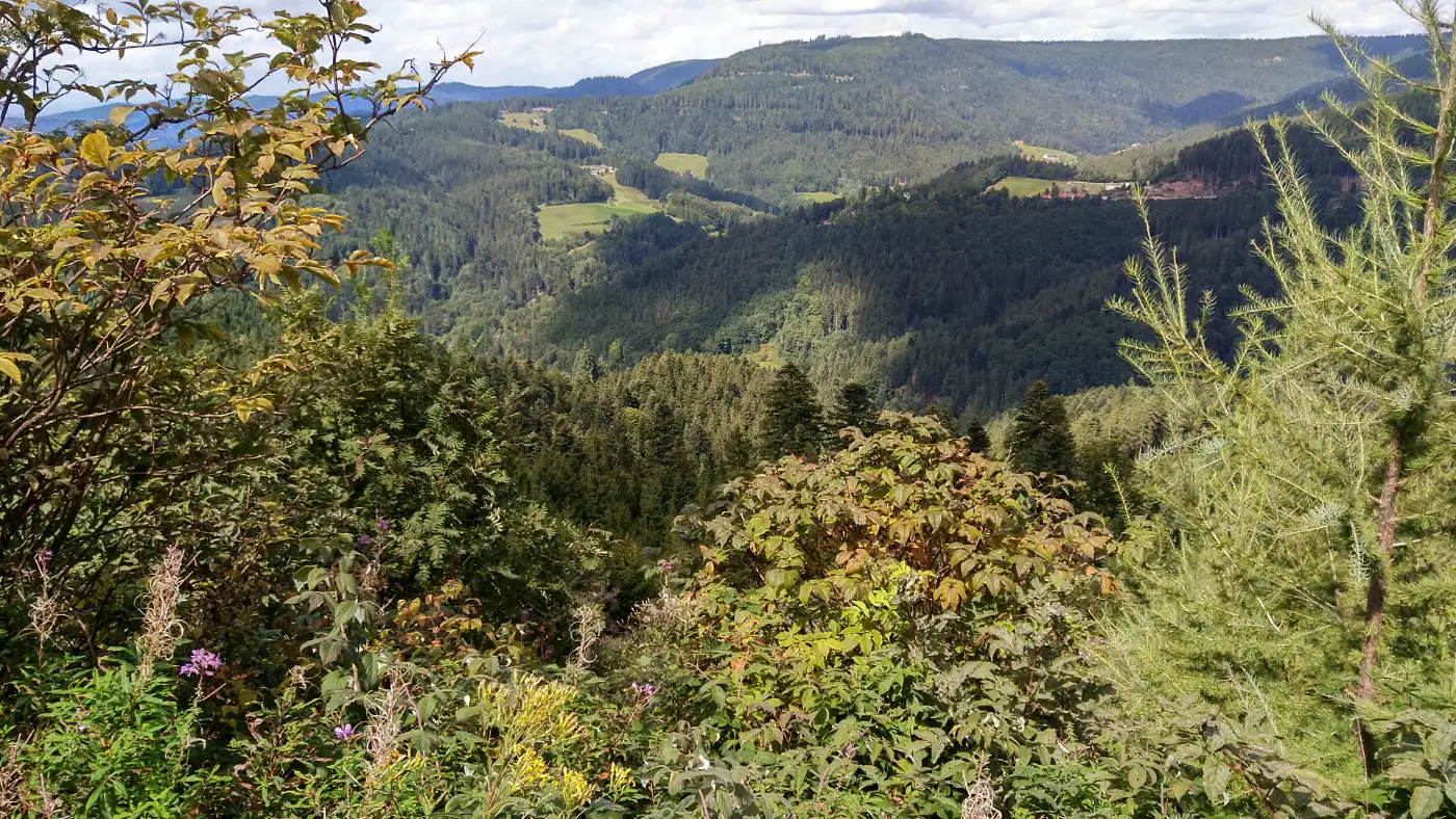 Unser nächstes Ziel ist die Marienruhe, ein rastfreundlicher Platz auf etwa 900 m Höhe. Dort lädt eine Himmelsliege vor einer Himmelskulisse: Der Blick spannt über das Tal, unser Einstiegspunkt rückt in die Ferne, und das Panorama des Nationalparks Schwarzwald wird zur ruhigen Belohnung unserer Anstrengungen. Besonders angenehm ist die kleine Selbstbedienungs-Getränkestation, die uns mit kühlen Erfrischungen versorgt und diesen Rastplatz zu einem echten Genussort macht.Habererturm