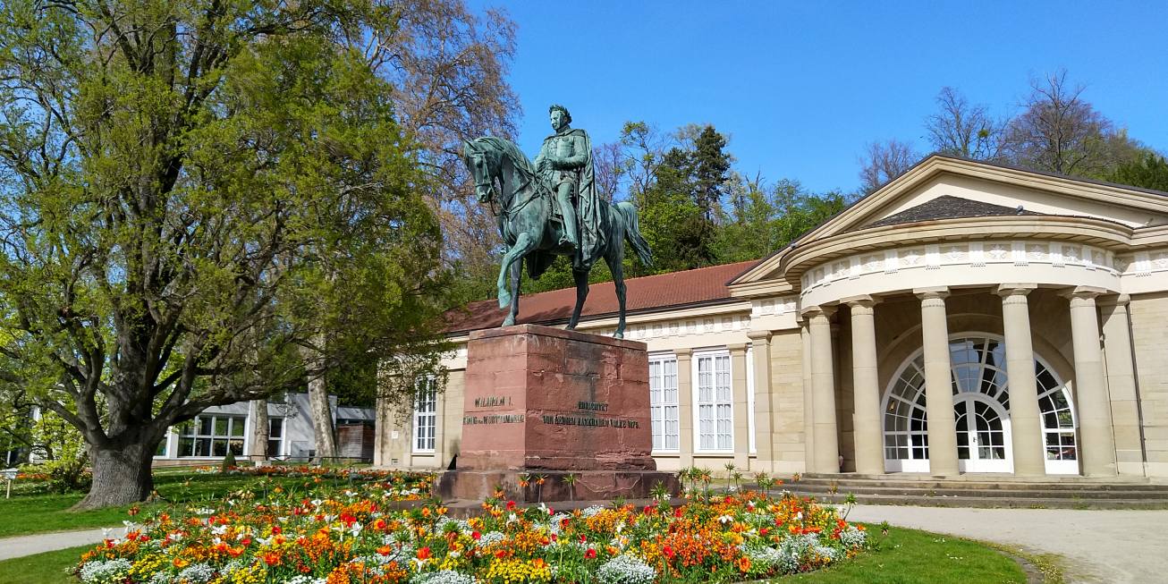 Unsere Wanderung beginnt am Bahnhof Bad Cannstatt, einem der ältesten Bahnhöfe Württembergs und einem historischen Tor zur Stadt Stuttgart. Von hier aus führt uns der Weg zunächst in den idyllischen Kurpark, der für seine zahlreichen Mineralquellen berühmt ist. Bad Cannstatt zählt zu den mineralwasserreichsten Orten Europas - ein Umstand, der nicht nur die Trinkkultur, sondern auch die Badetradition der Region geprägt hat.Solebadtherme und Kursaal
