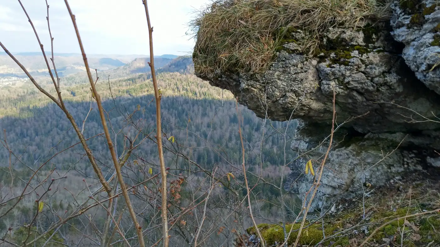 Der Weg führt nun auf einem aussichtsreichen Gratpfad weiter entlang des Traufs. Immer wieder öffnen sich spektakuläre Tiefblicke ins Tal und weit über die sanft geschwungene Alblandschaft. Besonders eindrucksvoll ist der Abschnitt rund um den Hangenden Stein - eine charakteristische, leicht überhängende Felsnase, die sich kühn über dem Abgrund erhebt. Ein Ort, der Ruhe ausstrahlt und gleichzeitig Ehrfurcht weckt.Raichberg