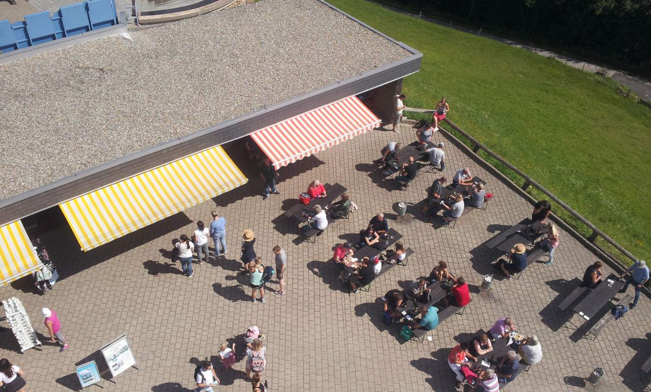 Nach etwa 1,5 bis 2 Stunden erreichen wir die Bergstation der Pfänderbahn auf rund 1.064 Metern über dem Meeresspiegel. Vom Gipfel eröffnet sich ein unglaubliches 360-Grad-Panorama - vom Bodensee über die Allgäuer Alpen bis zu den Schweizer Alpen und tief hinein in die Bergwelt des Bregenzerwaldes. Dies ist der perfekte Ort für eine wohlverdiente Pause, sei es im Bergrestaurant oder auf einer Aussichtbank mit Blick auf den See.Der Alpenwildpark