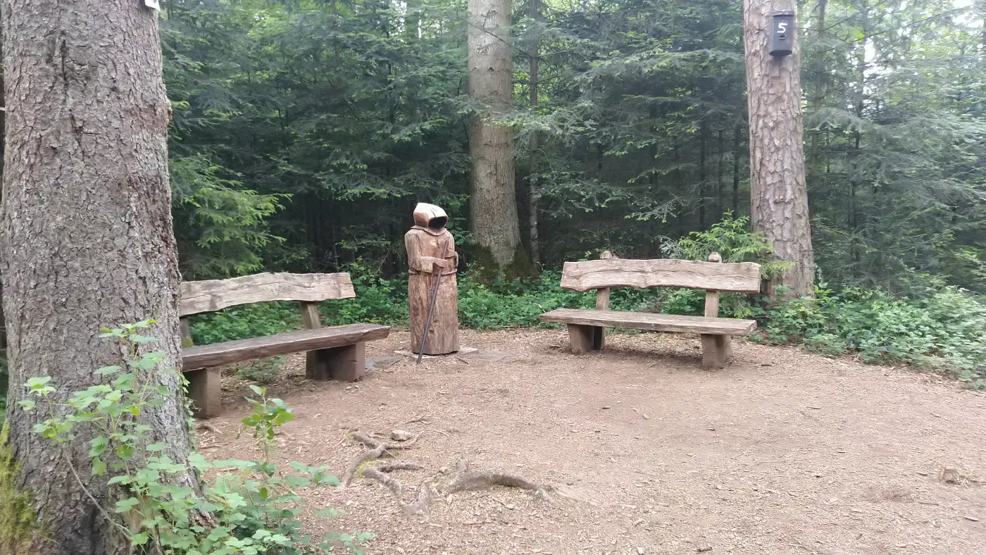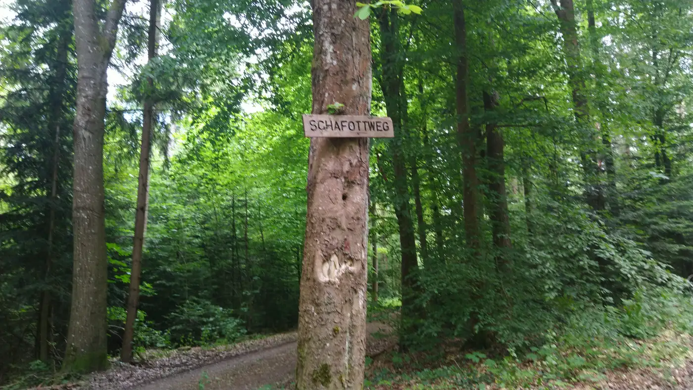 Von der Steinernen Bank führt der Weg weiter entlang des sogenannten Schafottwegs, der sich durch dichten Wald schlängelt. Nach kurzer Zeit erreichen wir eine historische Lichtung zur linken Seite: den Schafottplatz. Dieser stille Ort trägt eine schwere Vergangenheit. Um das Jahr 1800 wurde hier das Calwer Schafott - auch bekannt als "Blutgerüst" - errichtet. Auf diesem erhöhten Platz wurden einst öffentliche Hinrichtungen vollzogen - ein grausames Schauspiel, das damals vor allem der Abschreckung dienen sollte. Die letzte vollstreckte Strafe ereignete sich am 28. August 1818: Gertrude Pfeifflin, eine 26-jährige Frau aus Teinach, wurde wegen Raubmordes durch das Schwert hingerichtet. Mit dieser grausamen Tat endete in Calw die Zeit der öffentlichen Exekutionen - ein Wendepunkt in der regionalen Strafrechtsgeschichte.Ort der Stille - Erinnerung am Calwer Schafott