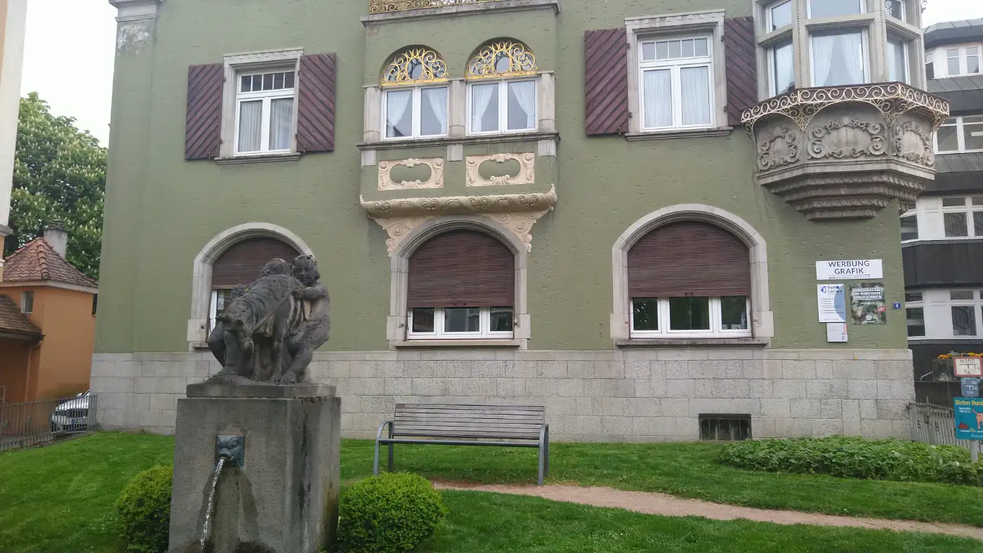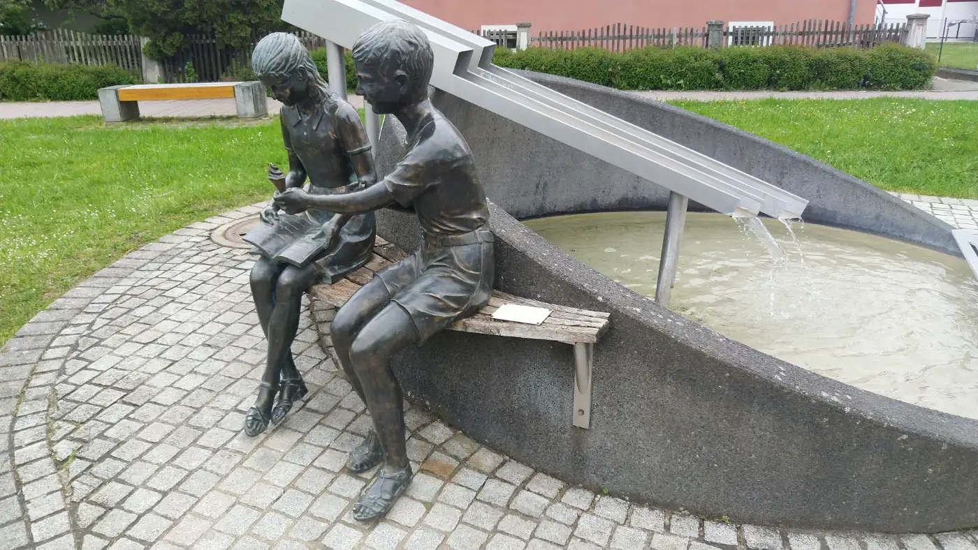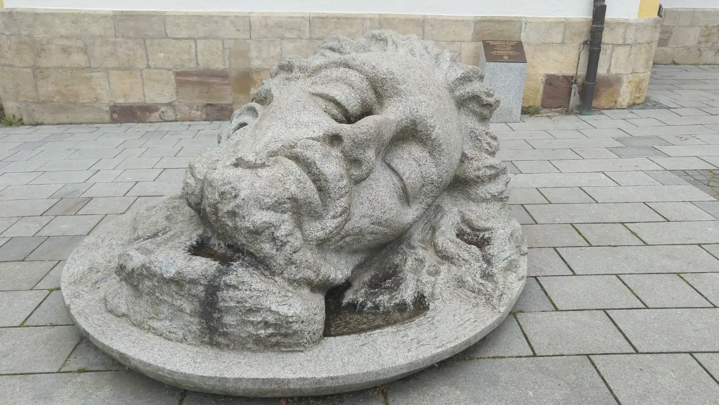Schon bald erreichen wir die Stadtkirche St. Johannis, deren markante Zwillingstürme das Stadtbild prägen. Direkt neben der Kirche entdecken wir eine ungewöhnliche und tief symbolische Steinskulptur: den Kopf des geköpften Täufers Johannes, der der Kirche geweiht ist. Dieses Kunstwerk regt zur Auseinandersetzung mit der Geschichte und dem Glauben an - und markiert zugleich einen bedeutungsvollen Punkt auf unserem Weg.Die Donauquelle