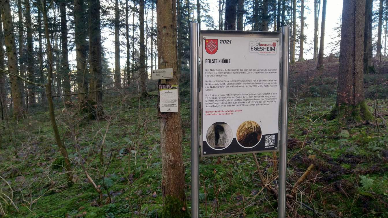 Die Beilsteinhöhle ist ein bedeutendes Naturdenkmal und war bereits in der Altsteinzeit (um 10.000 v. Chr.) ein menschlicher Lebensraum. Ihren Namen verdankt sie den steinernen Beilköpfen, die bei Grabungen entdeckt wurden. Auch Funde wie Knochenreste, Keramikfragmente und Werkzeuge aus Stein zeugen davon, dass die Höhle bis etwa 2000 v. Chr. immer wieder bewohnt oder genutzt wurde. Sie zählt zu den ältesten archäologischen Fundstätten auf dem Großen Heuberg. Hinweis: Die Höhle ist im Winter geschlossen, um die dort lebenden Fledermäuse während ihres Winterschlafs zu schützen.Königsheim Tourende