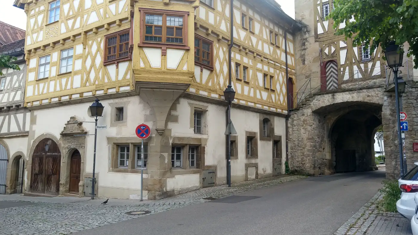 Wir verlassen die Festung Hohenasperg über die historische Zugangsstraße, die sich zwischen hohen Mauern den Hügel hinab windet. Unten angekommen, folgen wir dem ausgeschilderten Wanderweg, der uns durch Felder und offene Landschaften in Richtung Markgröningen führt. Die Strecke verläuft überwiegend auf befestigten Wegen und bietet weite Ausblicke auf das Strohgäu. Nach etwa einer Stunde erreichen wir die mittelalterlich geprägte Altstadt von Markgröningen mit ihren gut erhaltenen Fachwerkhäusern und dem bekannten Marktplatz.