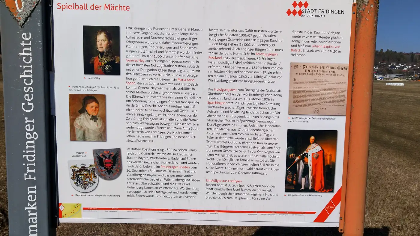 ⚔️ Spanischer Erbfolgekrieg: Von 1701 bis 1714 kämpften europäische Mächte um die Nachfolge auf den spanischen Thron. Die Region entlang der Donau war Schauplatz zahlreicher Truppenbewegungen, und Schanzen wie die in Fridingen wurden errichtet, um wichtige Routen zu sichern.Diese Tour wurde am 07.03.2025 von einer realen Person erwandert, fotografiert und beschrieben. Die GPS-Daten der Fotos wurden vor Ort erfasst und dienten zur exakten Rekonstruktion der Route.