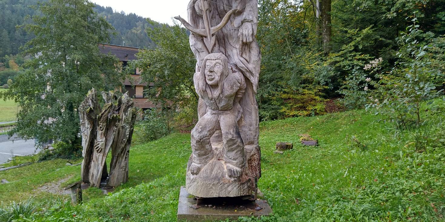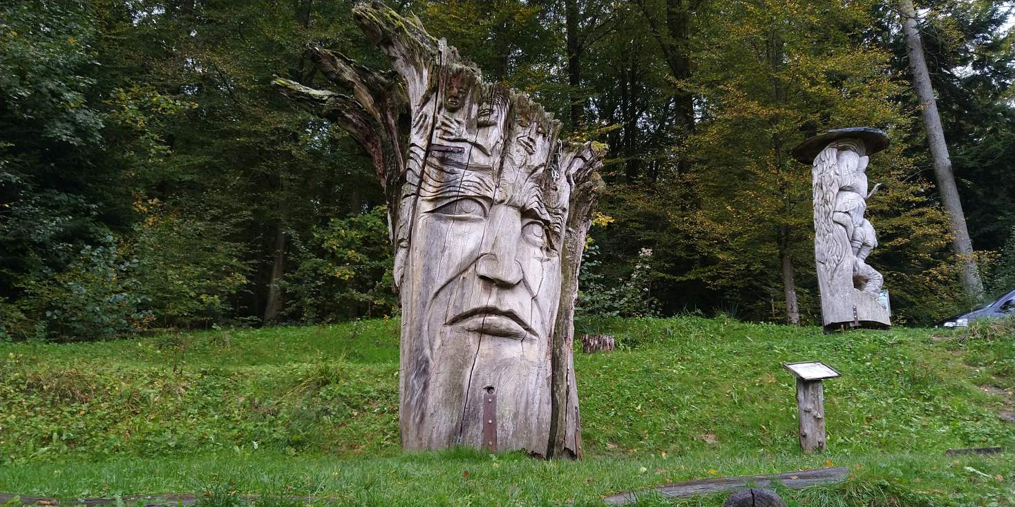 Hier startet auch der Skulpturenpfad "Waldmenschen", ein verstecktes Juwel im Freiburger Stadtwald. Der 2004 eröffnete Pfad wurde von dem Bildhauer Thomas Rees gestaltet und besteht aus mehreren kunstvollen Holzskulpturen, die auf überraschende Weise in den Wald integriert sind. Die Figuren, geschnitzt aus alten, knorrigen Baumstämmen, scheinen aus dem Erdreich zu wachsen, zwischen Bäumen zu lauern oder neugierig aus dem Dickicht hervorzutreten.Skulpturen zwischen Mythos und Natur