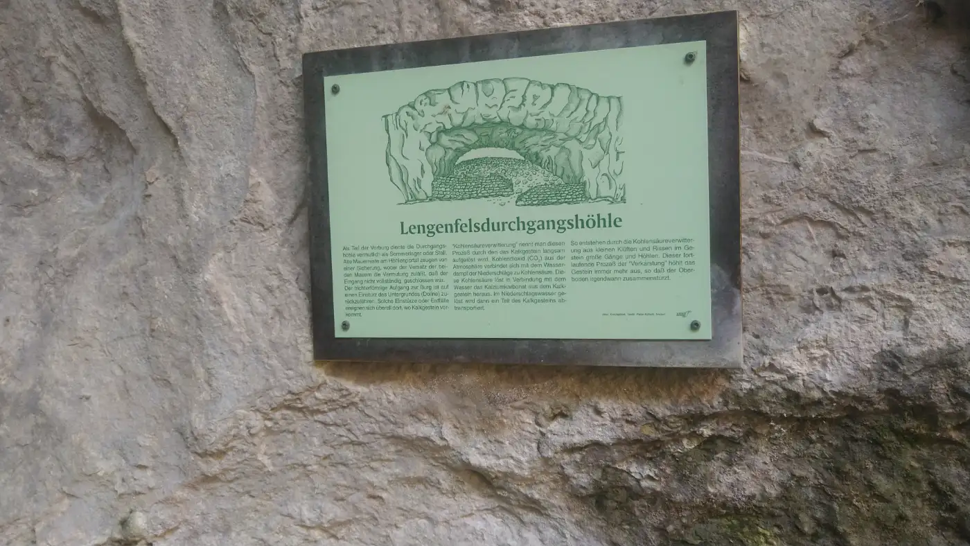 Um die Burgruine Lengenfels zu erreichen, verlassen wir das BĂ€ratal, indem wir rechts auf einen ansteigenden Weg abbiegen. Der Pfad ist von Anfang an sehr steil und verlangt durch den teils lehmigen, rutschigen Untergrund unsere volle Konzentration - Haltmöglichkeiten sind nur vereinzelt vorhanden. Doch jede MĂŒhe wird belohnt: Schon wĂ€hrend des Aufstiegs eröffnen sich immer wieder beeindruckende Ausblicke ĂŒber das BĂ€ratal, die uns einen einzigartigen Blick auf die von Felsen gesĂ€umte Landschaft gewĂ€hren.Lengenfelsdurchgangshöhle