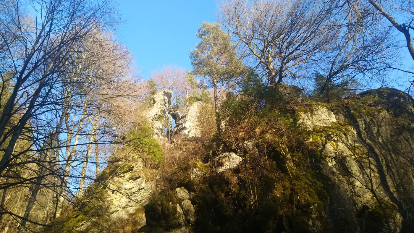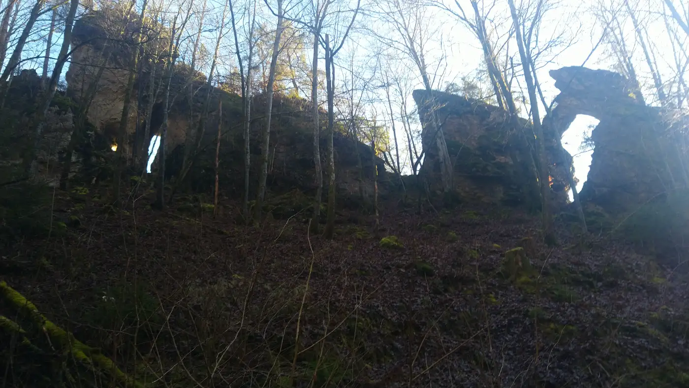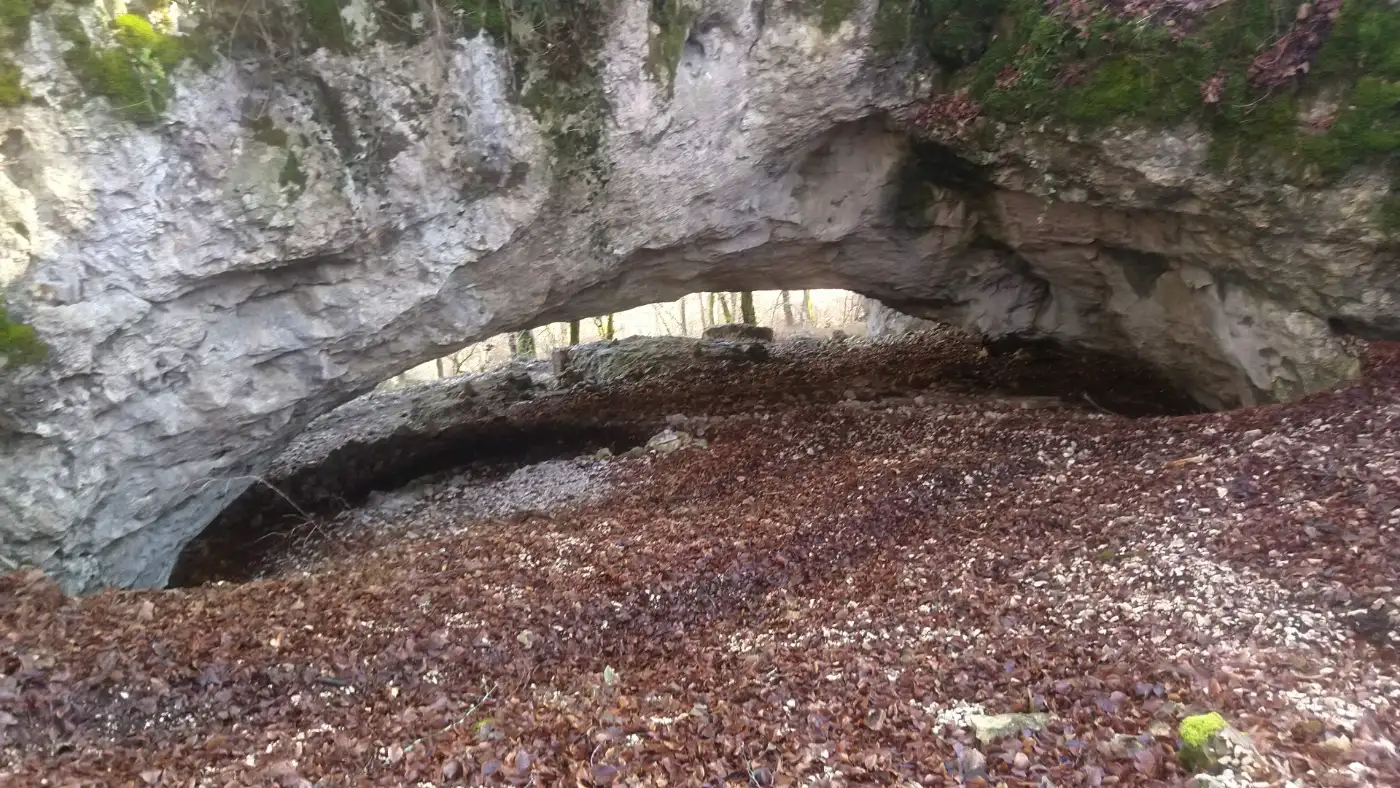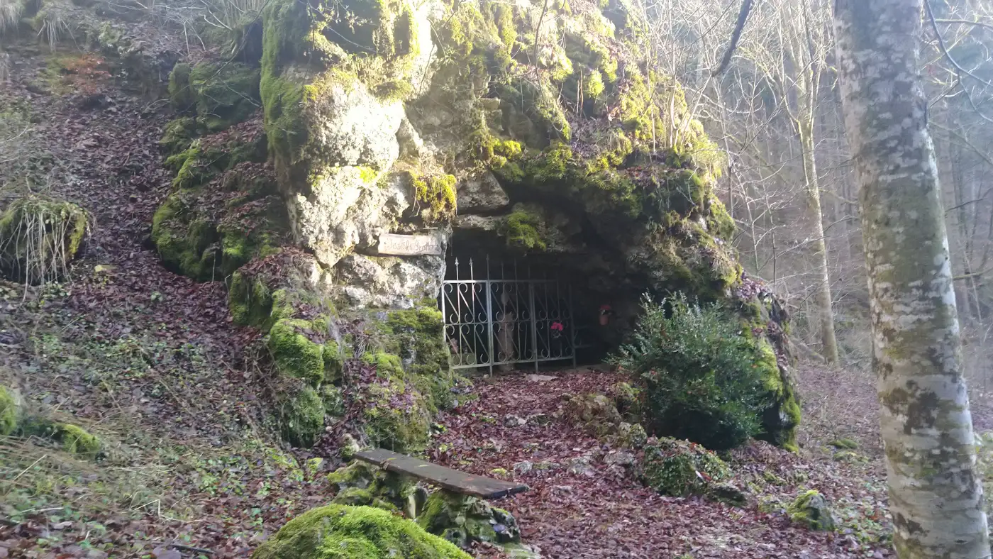 Unser Weg fĂŒhrt uns weiter zum Felsentor bei BĂ€renthal, einer markanten natĂŒrlichen Felsformation, die zu den geologischen Highlights dieser Wanderung gehört. Felsentore sind natĂŒrliche Felsbögen, die vor vielen Millionen Jahren im Jurameer entstanden sind. Sie bestehen aus Ablagerungen von Organismen wie Korallen und SchwĂ€mmen, die sich im Laufe der Erdgeschichte verfestigt haben. Durch Erosionsprozesse, bei denen Wasser Strukturen ausspĂŒlte und Karstformen bildete, blieben Teile der HöhlenwĂ€nde stehen und formten so eindrucksvolle DurchgĂ€nge im Fels.Josefs Grotte