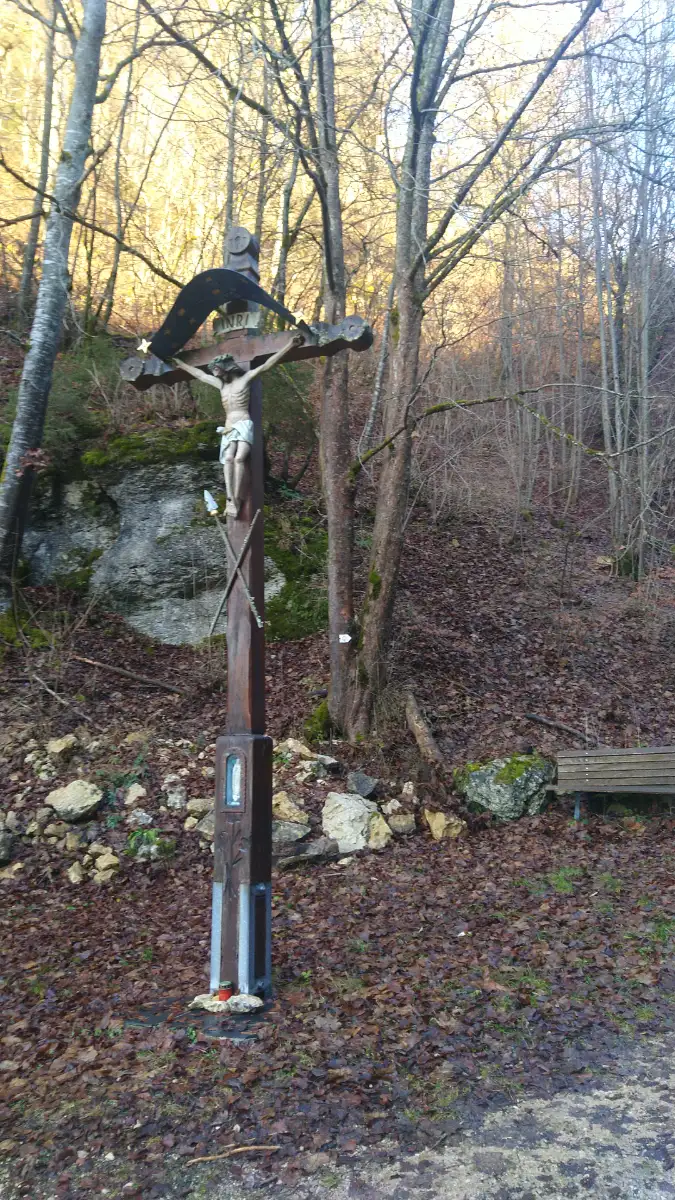 Bevor wir unsere Wanderung in BĂ€renthal an der Bushaltestelle Rathaus abschlieĂen, verweilen wir noch einen Moment an der Josefs Grotte, die sich verborgen unterhalb der Felsentore in der engen Schlucht befindet. Die kleine Höhle ist tief in den Kalkstein des BĂ€ratals eingebettet und dient bis heute als stille AndachtsstĂ€tte. In der Schlucht und an den umgebenden Felsen begegnen wir mehreren Kreuzen, die diesem Ort eine besondere spirituelle Bedeutung verleihen. Dazu zĂ€hlt auch der Kreuzfelsen mit einem von Adam Bisely gestifteten Kreuz sowie weitere Kruzifixe, die einst den Friedhof von BĂ€renthal schmĂŒckten und hier einen neuen Platz gefunden haben.Diese Tour wurde am 18.12.2025 von einer realen Person erwandert, fotografiert und beschrieben. Die GPS-Daten der Fotos wurden vor Ort erfasst und dienten zur exakten Rekonstruktion der Route.