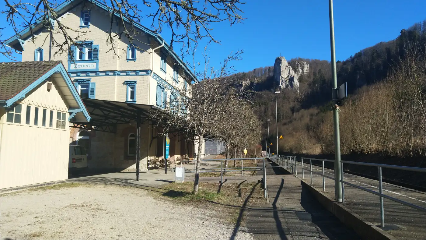 Our hike begins at the train station in Fridingen an der Donau. From there, we cross the Danube via a small bridge and begin our ascent to the impressive Knopfmacherfelsen. Once at the top, we are rewarded with a stunning panoramic view over the steep and winding Danube Valley. Far below, we can spot the baroque Beuron Archabbey, nestled in the heart of the Upper Danube Nature Park.Soldiers’ Cemetery