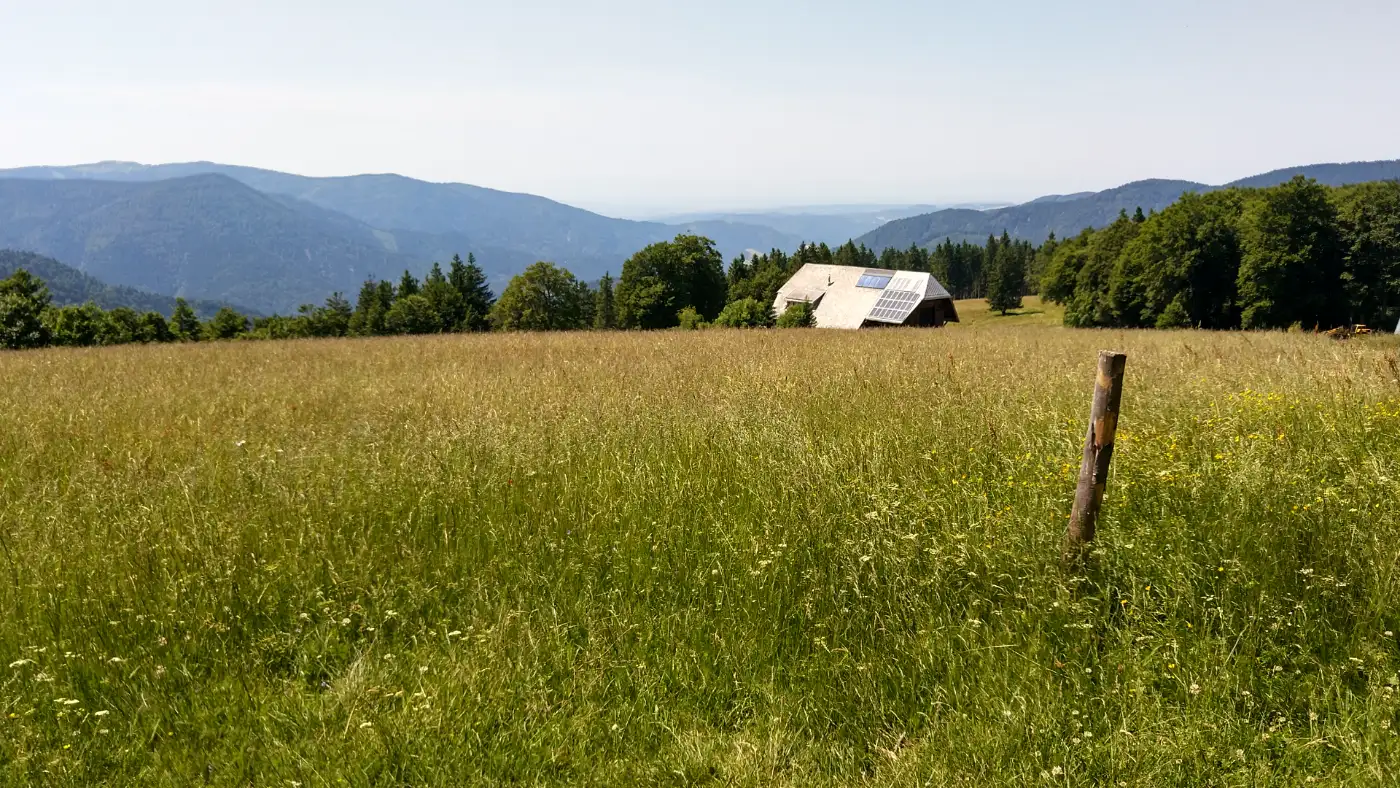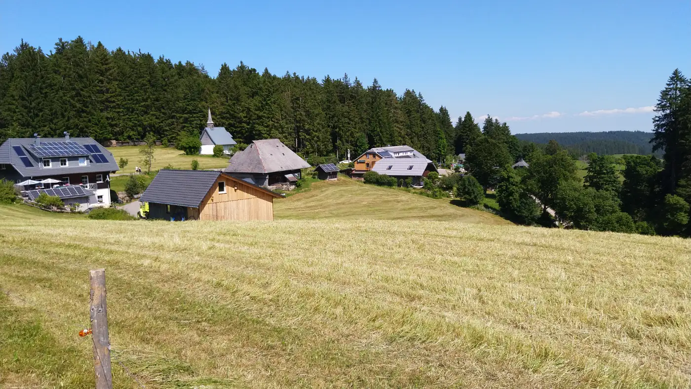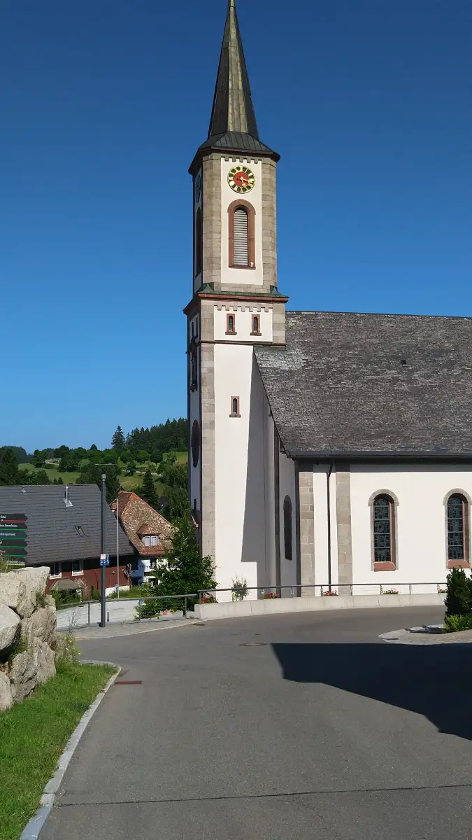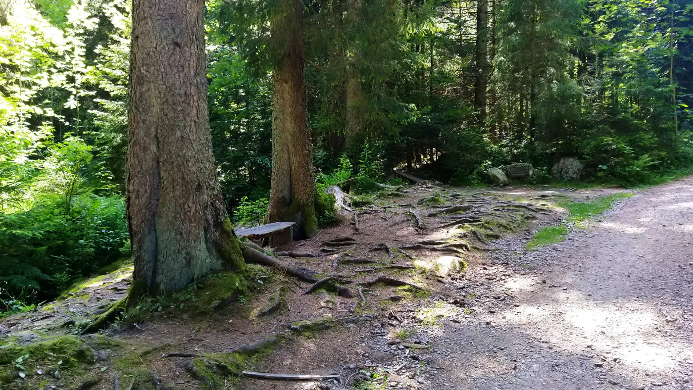 Der Weg führt uns weiter durch den schattigen Wald hinab nach Schönwald. Sobald wir den Wald verlassen, eröffnet sich ein malerischer Blick auf den idyllischen Ort, der ruhig im Tal liegt. An der Bushaltestelle von Schönwald endet unsere Wanderung, wo wir auf den Bus warten, der uns bequem zurück nach Furtwangen bringt. So klingt ein erlebnisreicher Tag inmitten von Natur, Geschichte und beeindruckenden Ausblicken entspannt aus.Diese Tour wurde am 20.06.2025 von einer realen Person erwandert, fotografiert und beschrieben. Die GPS-Daten der Fotos wurden vor Ort erfasst und dienten zur exakten Rekonstruktion der Route.