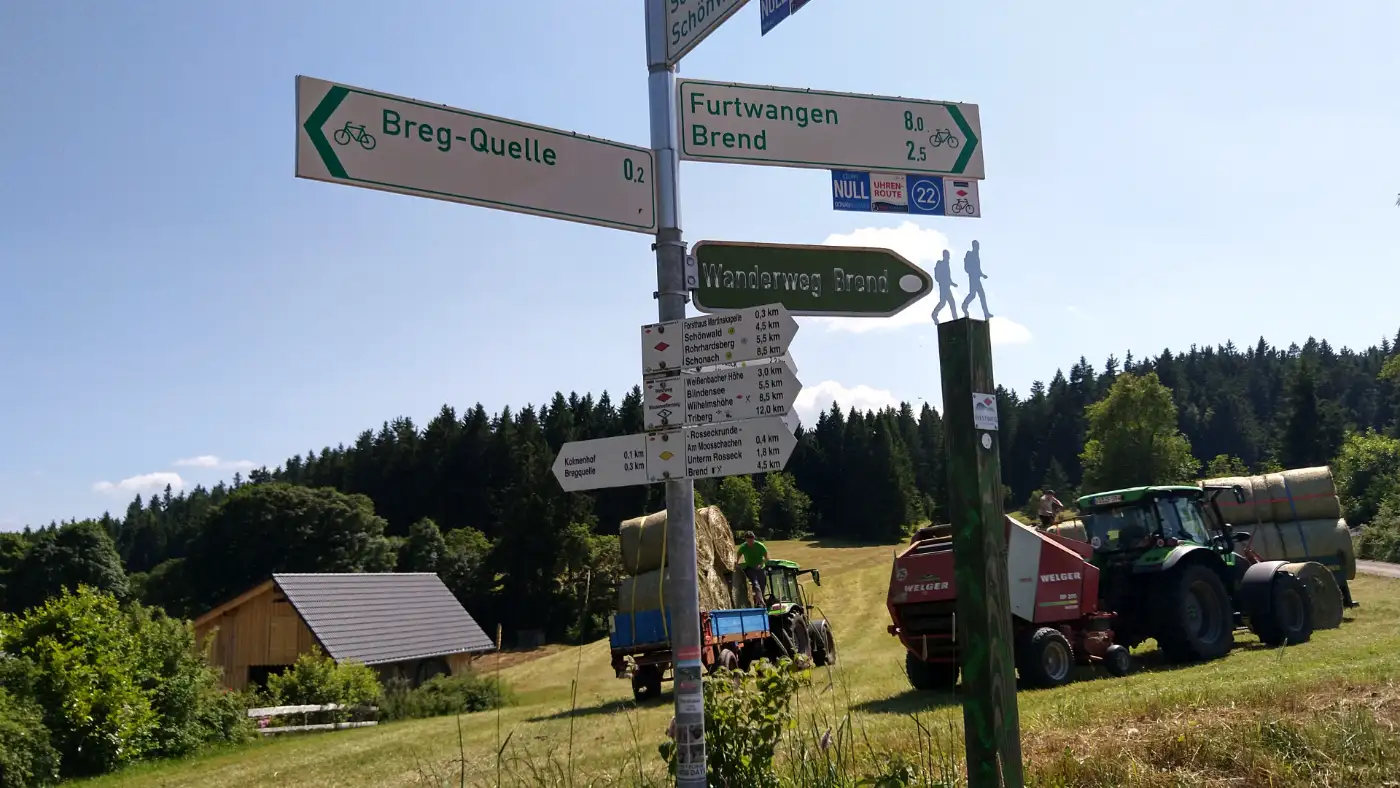 An der Bushaltestelle Furtwangen-Friedrichschule beginnt unsere Wanderung in Richtung Innenstadt. Am Narrenbrunnen überqueren wir den Marktplatz und gehen weiter zur Kirche. Dort weist ein Wegweiser den Pfad zum Brend. Der Weg führt steil hinauf, vorbei am Friedhof, der Fatima Kapelle, weiter hinauf zum Gymnasium - und schließlich hinein in den Wald. Der Otto-Rombach-Weg führt uns durch den Wald bis zum kleinen Weiler Raben. Von dort folgen wir ein Stück der Straße, passieren die Raststätte Goldener Raben - und tauchen anschließend wieder in den Wald ein. Dabei folgen wir stets dem Wegweiser mit der roten Raute in Richtung Brend. Der Pfad wechselt zwischen Waldwegen und schmaler Landstraße. Immer wieder öffnen sich dabei herrliche Blicke ins Simonswälder Tal, die zum Innehalten und Genießen einladen.Der Brend und sein Aussichtsturm