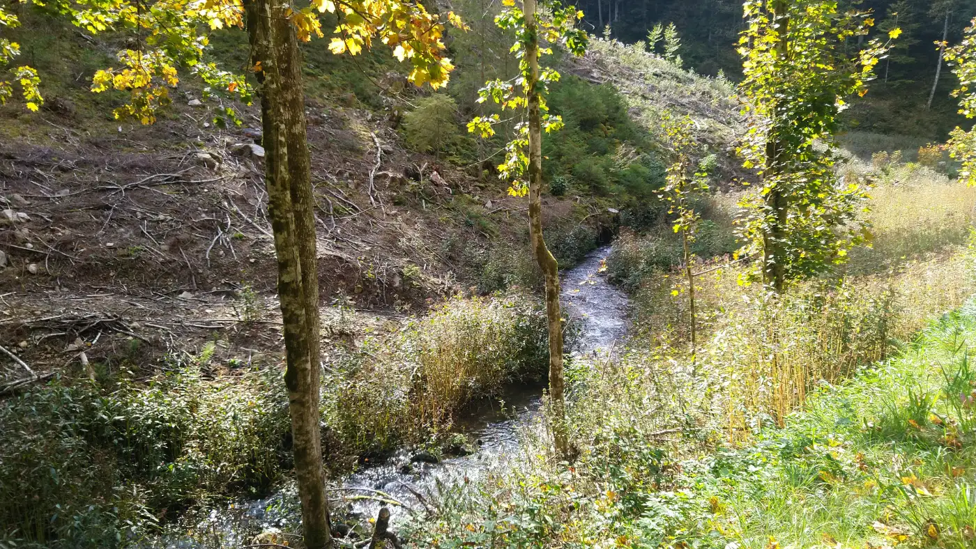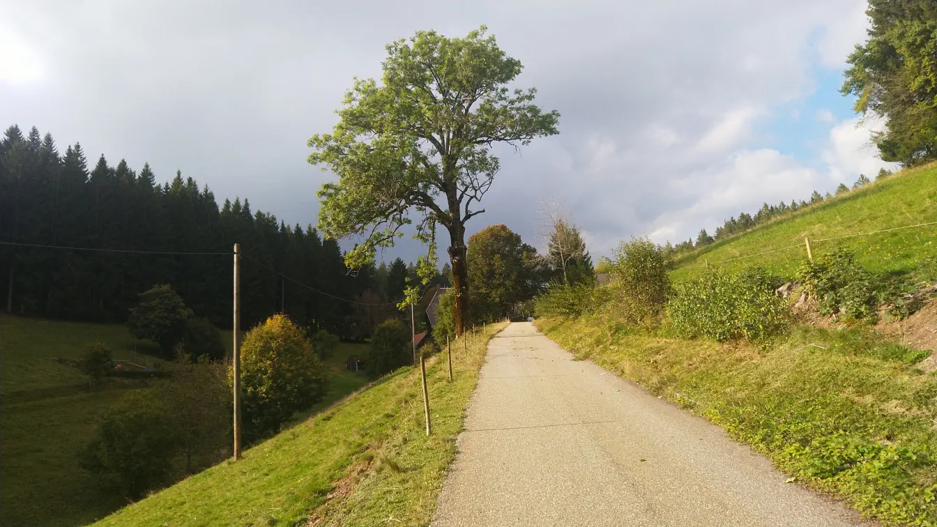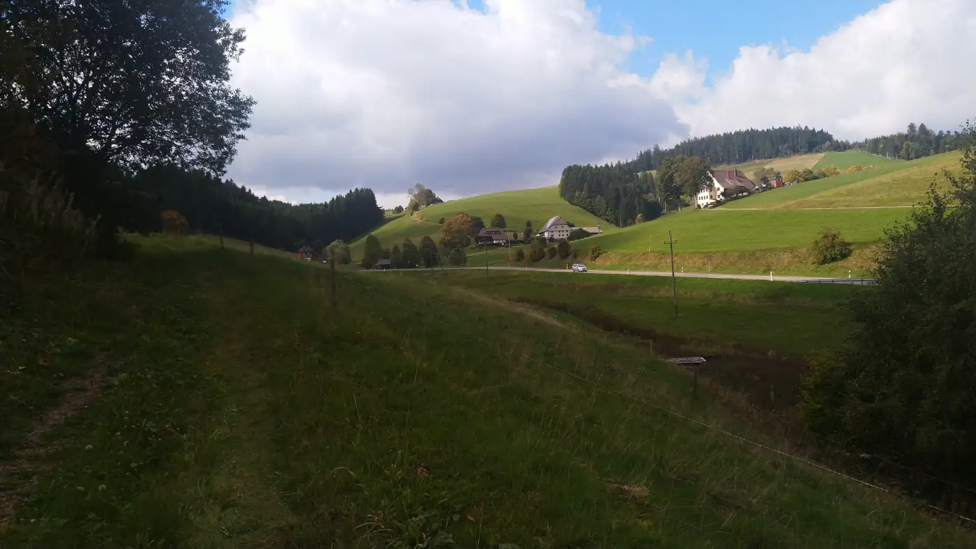 Hinter der Hexenlochmühle führt unser Weg weiter bergauf in Richtung Gütenbach. Am Brunnen biegen wir rechts ab und folgen dem Weg, der uns oberhalb des sogenannten Fallengrunds entlangführt - einem idyllischen Tal, das von verstreut liegenden Schwarzwaldhöfen geprägt ist. Einer davon diente sogar als Drehort für die bekannte Fernsehserie Die Fallers. Die typischen Höfe mit ihren weit ausladenden Walmdächern und den gepflegten Bauerngärten erzählen von einer tief verwurzelten landwirtschaftlichen Tradition. Dieser Abschnitt der Wanderung wirkt wie eine lebendig gewordene Postkarte - ruhig, authentisch und voller Schwarzwälder Charme.Ortschaft Gütenbach