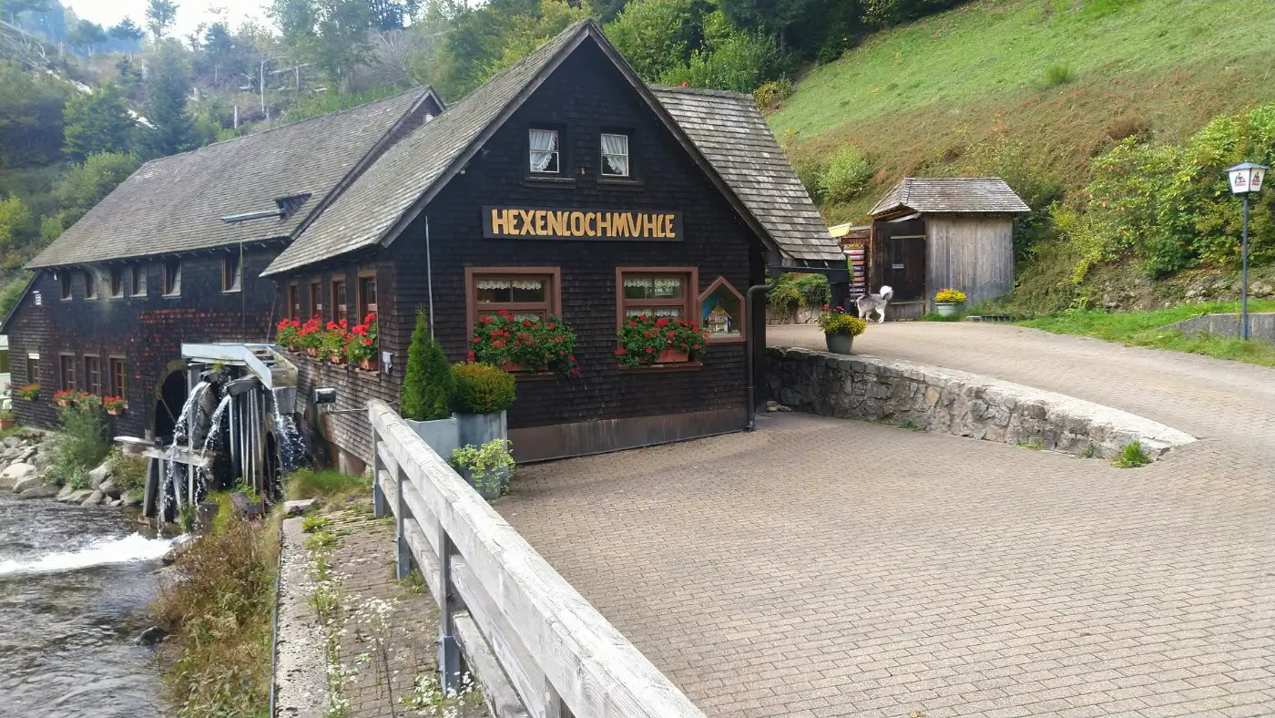 Bis zur berühmten Hexenlochmühle folgen wir der Landstraße - eines der bekanntesten Fotomotive des Schwarzwalds. Die beiden Wasserräder drehen sich unermüdlich und versorgen das historische Gebäude mit Energie, ganz so wie vor Jahrhunderten. Die Hexenlochmühle wurde 1825 als Sägemühle erbaut und ist seit 1839 in Familienbesitz. Das größere der Wasserräder hat einen Durchmesser von etwa 4 Metern und treibt sowohl eine Hochgangsäge als auch eine Kreissäge an. An das historische Mühlengebäude ist ein Restaurant mit Schwarzwälder Spezialitäten angeschlossen, mit gemütlicher Schwarzwaldstube und großer Freiterrasse direkt am Heubach. Zusätzlich gibt es Geschäftsräume und einen Souvenir-Shop, in dem man u.a. Kuckucksuhren, Honig, Schinken und Edelbrände kaufen kann.Schwarzwaldhöfe im Fallengrund