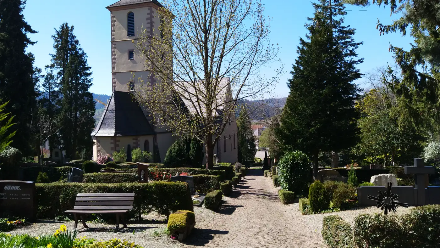 Anschließend durchqueren wir den Stadtfriedhof mit seinen uralten Mammutbäumen und lassen diesen hinter uns. Wir wandern vorbei am Edeka-Markt und biegen rechts in Richtung Ortsausgang ab. Ab hier beginnt der eigentliche Wanderpfad, der sich in sanften Anstiegen und Abstiegen durch die Rebhänge oberhalb des Kinzigtals zieht. Der Weg verläuft malerisch entlang der Weinberge und bietet immer wieder herrliche Ausblicke auf das Tal, die Stadt Gengenbach und die umliegenden Schwarzwaldhöhen.Schloss Ortenberg