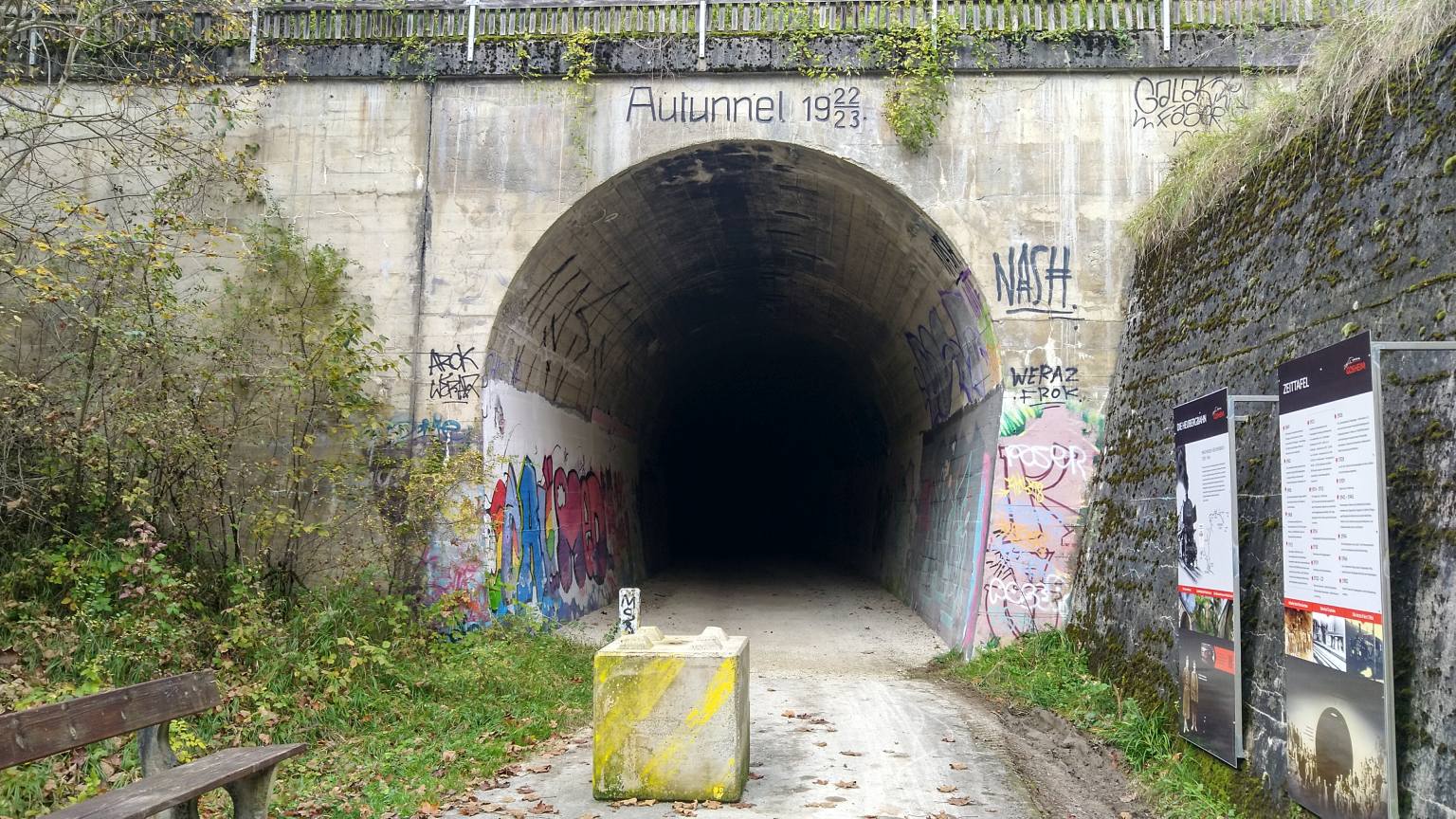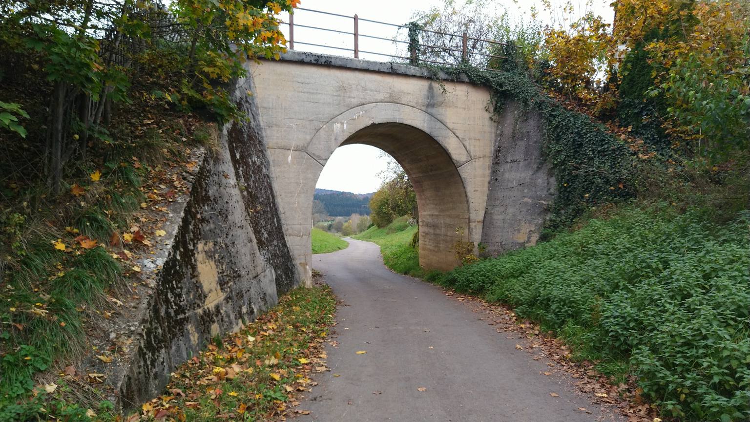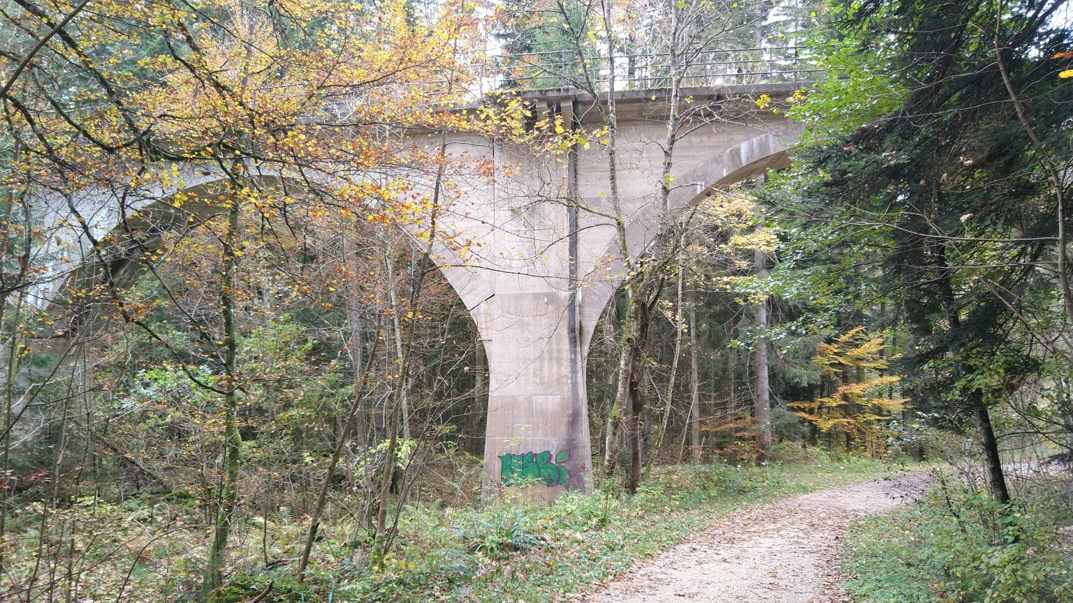 Von hier aus machen wir uns auf den Weg über den sogenannten Autunnel, einem Eisenbahntunnel, der zur stillgelegten Bahnstrecke Spaichingen-Reichenbach gehört. Der Tunnel ist heute ein markanter Teil des Wanderwegs und erinnert an die bewegte Eisenbahngeschichte der Region.Eisenbahn Viadukt