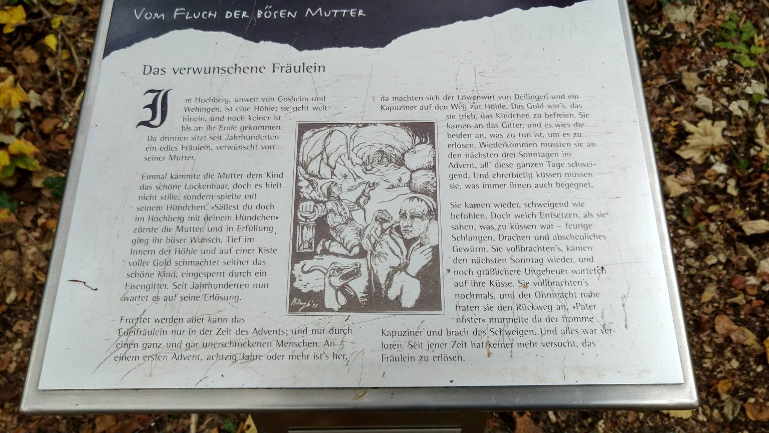 Direkt hinter dem Tunnel erreichen wir die ersten Ausläufer des Ortes Gosheim, der am westlichen Fuß des Lembergs liegt. Der Weg führt nun sanft ansteigend durch die Ortsrandlagen und weiter in die abwechslungsreiche Landschaft aus lichten Wäldern, felsigen Pfaden und wiesenbestandenen Hängen.Der Lemberggipfel