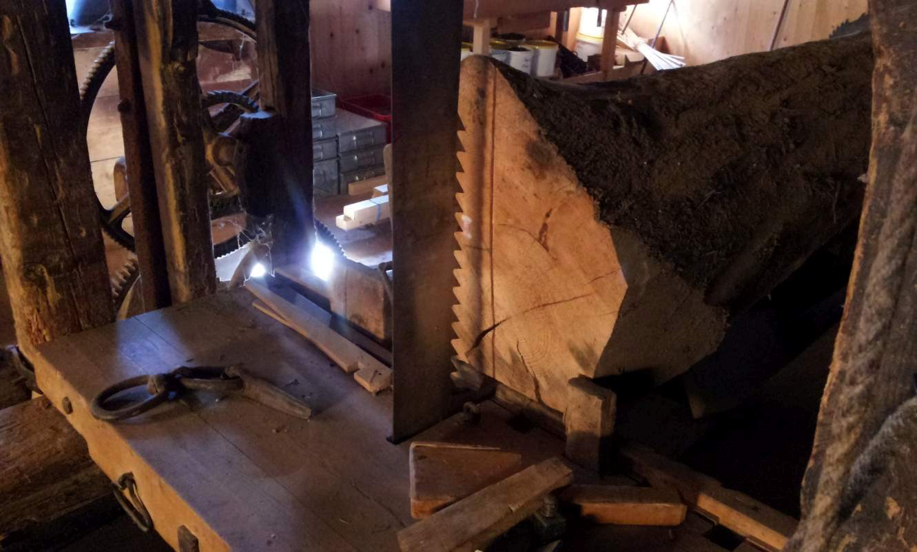 Ursprünglich bekannt als Dreistegenmühle, wurde sie im Jahr 1825 von einem Uhrmacher aus dem benachbarten Furtwangen erbaut. Schon damals diente die Wasserkraft zum Antreiben von Maschinen für die Uhrenproduktion. Heute ist die Hexenlochmühle die einzige Mühle im Schwarzwald, die noch über zwei funktionsfähige Wasserräder verfügt - ein echtes technisches und kulturhistorisches Kleinod.Mühle mit Sägewerk