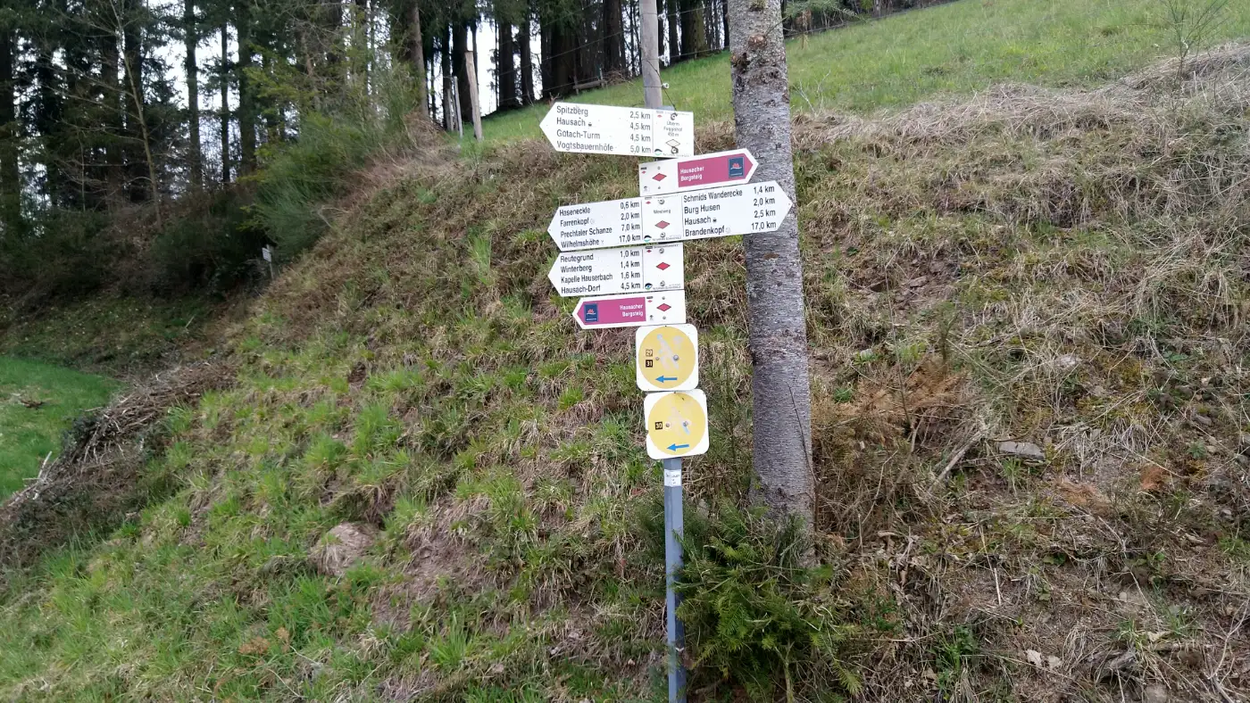 Unsere Wanderung beginnt am Bahnhof Hausach, den wir linkerhand verlassen und uns zunächst durch die malerische Innenstadt bewegen. Bereits nach wenigen Minuten passieren wir das Rathaus, ein beeindruckendes Gebäude, das den historischen Charme des Ortes widerspiegelt. Ein wichtiger Orientierungspunkt auf unserem Weg ist die Burg Schänke, die sich auf der linken Seite der Hauptstraße befindet. Kurz nach dieser Gaststätte erreichen wir einen Brunnen, an dem wir links abbiegen und unseren Aufstieg zur Burg Husen beginnen.Höhenburg Burg Husen