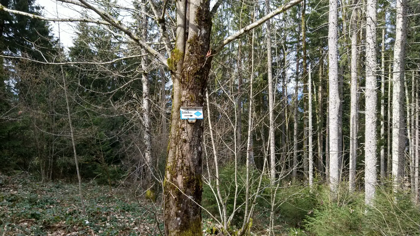 Nachdem wir auf dem Farrenkopf an der gemütlichen Hasemannhütte unsere wohlverdiente Rast genossen haben, setzen wir unsere Wanderung fort und beginnen den Abstieg nach Gutach. Dabei folgen wir den Wegweisern mit der blauen Raute, die uns sicher talwärts leiten. Unterwegs passieren wir einen malerischen Brunnen, der sich ideal für eine kurze Erfrischung eignet. Der Weg führt uns durch dichte Wälder und idyllische Lichtungen, bis wir schließlich ins Sulzbachtal eintreten. Hier erleben wir die typische Kulturlandschaft des Schwarzwalds mit grünen Wiesen, urigen Höfen und plätschernden Bächen.