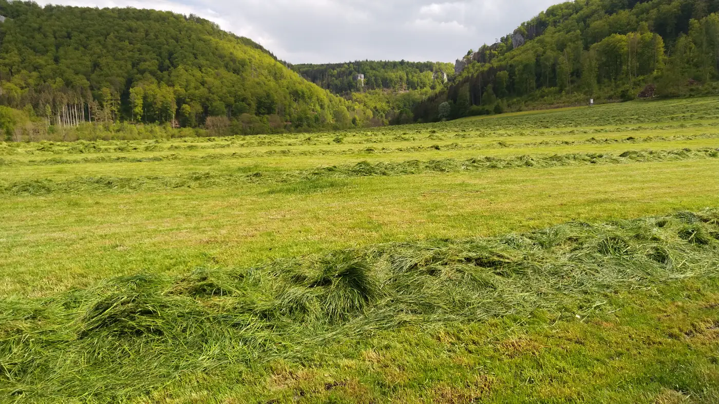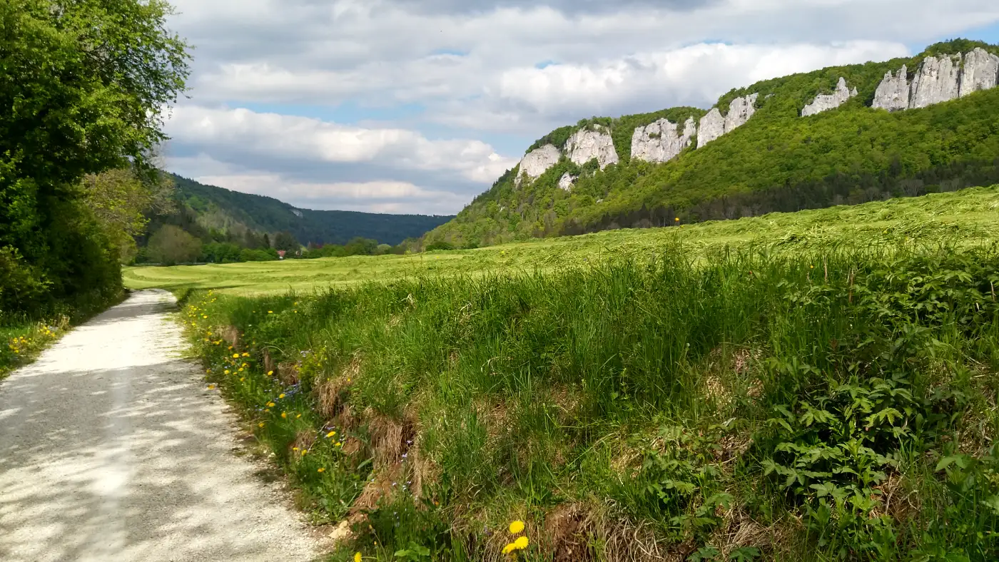 Am Eingangstor von Schloss Werenwag, das meist verschlossen ist, biegen wir rechts ab und folgen dem Wegweiser zum Korbfelsen. Der Waldweg führt uns zunächst durch lichte Buchenwälder, bis sich der Wald lichtet und wir den Korbfelsen erreichen, einen der schönsten Aussichtspunkte im Oberen Donautal. Der Felsen ragt kühn über das Tal hinaus und bietet eine spektakuläre Rundumsicht auf die schroffen Kalksteinwände, die sich hier canyonartig entlang der Donau erheben. Unten windet sich der Fluss durch die urwüchsige Landschaft. Der Platz lädt zum Verweilen ein, sei es für eine kleine Rast, ein Picknick oder einfach nur zum Staunen.Abstieg durchs Finstertal