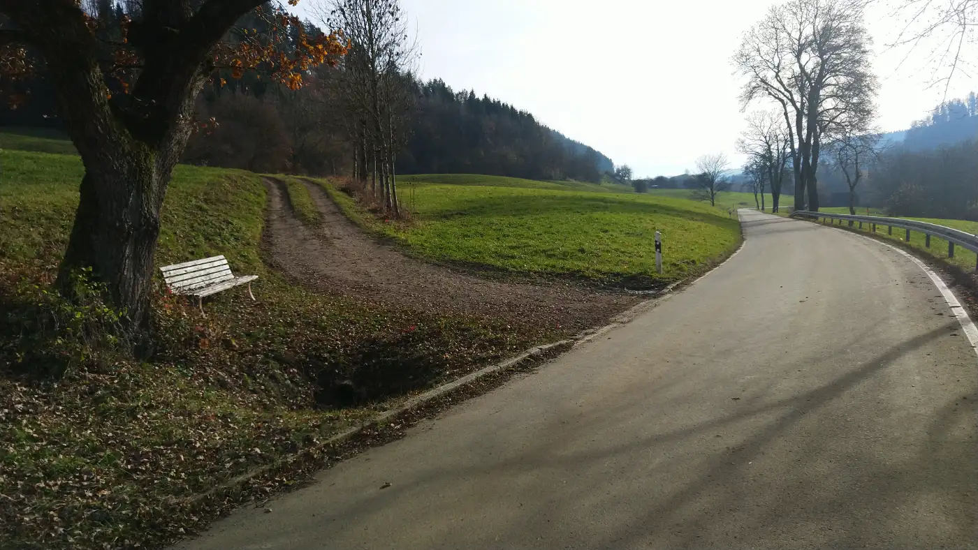 Bald erreichen wir Opferdingen, einen kleinen Weiler, der von bäuerlicher Gelassenheit und weiten Grünflächen umgeben ist. Die wenigen Häuser schmiegen sich an eine ruhige Anhöhe, von der aus wir bereits erste Blicke auf die Hügel rund um Blumberg erhaschen. Während wir durch den Ort schlendern, begleitet uns ein Gefühl von Abgeschiedenheit, das diesen Abschnitt der Wanderung besonders angenehm macht.Weiler Eschach